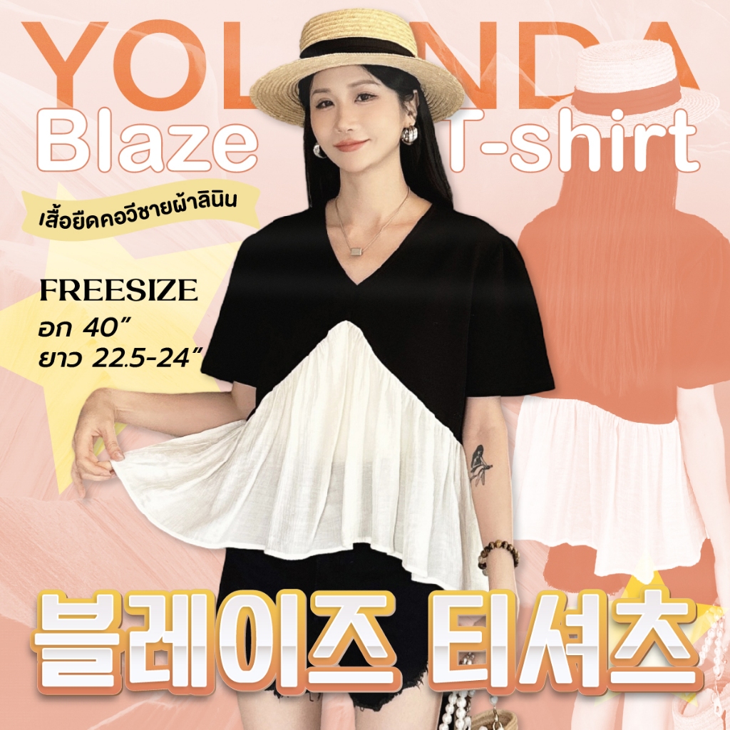 Yolanda เสื้อยืดแฟชั่น คอวี แขนสั้น แต่งจีบเล็กๆ เพิ่มความน่ารัก ด้วยแขนตุ๊กตา ช่วงไหล่เล็กน้อย ดีไซน์ทูโทน FF4007
