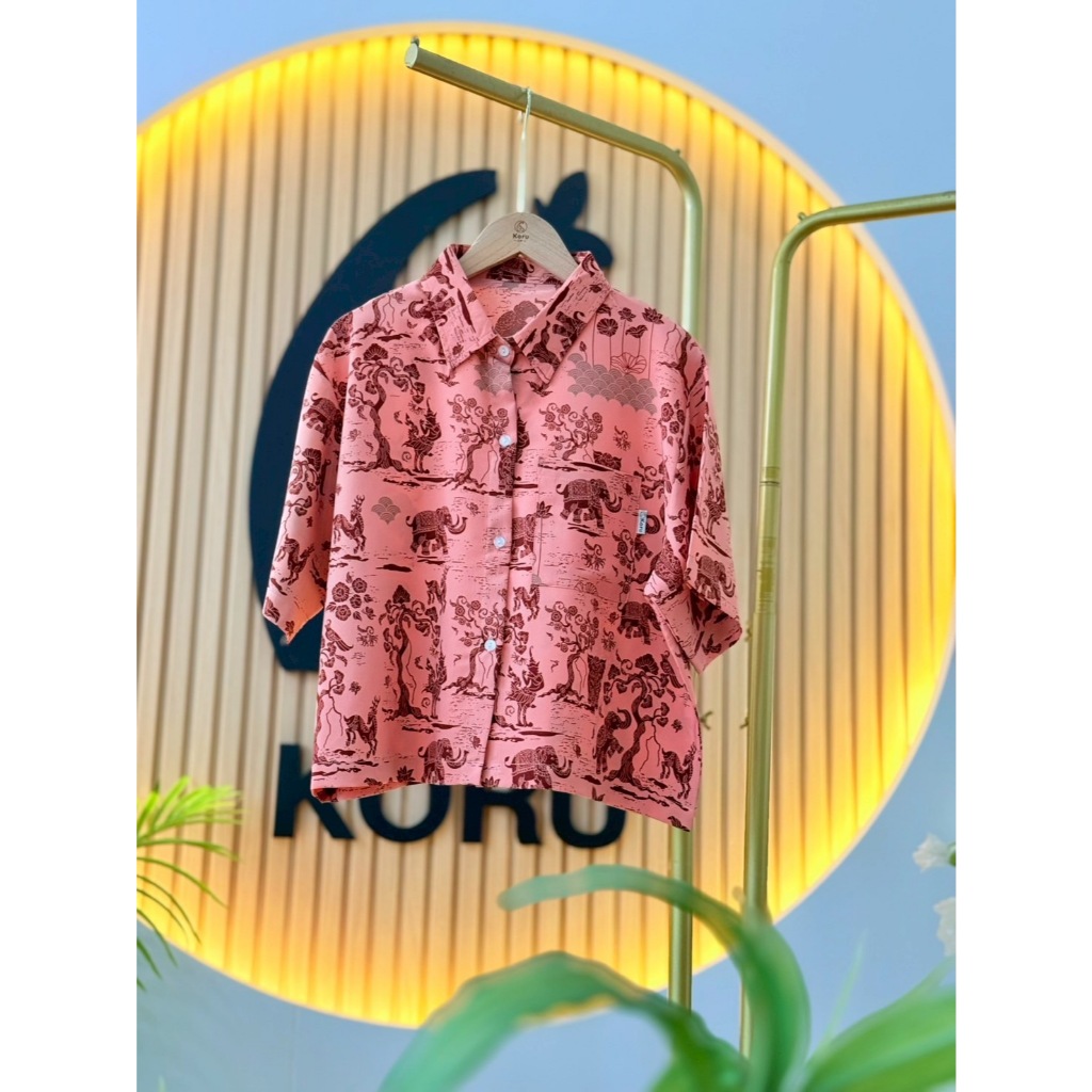KORU เสื้อครอป ลายช้างหิมพานต์ ( ความยาว 20'' )