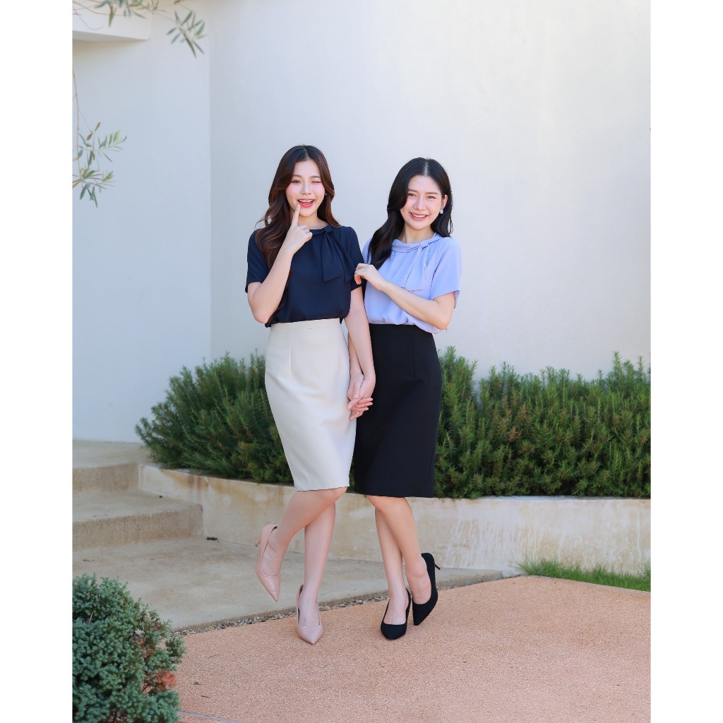 “Stella Blouse เแขนสั้น ปกพับโบว์หูกระต่ายสำเร็จ ไม่ต้องผูกโบว์เอง ใส่สมัครงาน สมัครแอร์ งานสวมหัวติดกระดุม