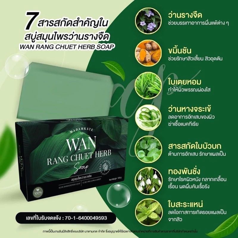 สบู่สมุนไพรว่านรางจืด ออแกนิก ฟองนุ่ม ลดผื่นแพ้ คันตามผิว ฟอกได้ทั้งครอบครัว 100 กรัม 🛁
