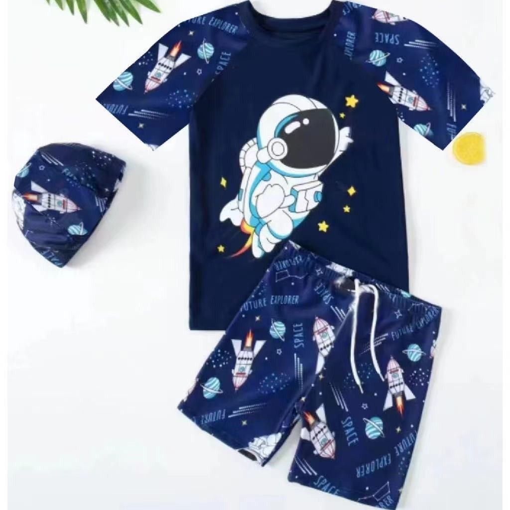 ชุดว่ายน้ำเด็กผู้ชายแบบวันพีซ, ดีไซน์เสื้อแขนสั้นและกางเกงว่ายน้ำขาสั้น, ชุดว่ายน้ำแบบครบชุดที่เหมาะสำหรับเด็ก