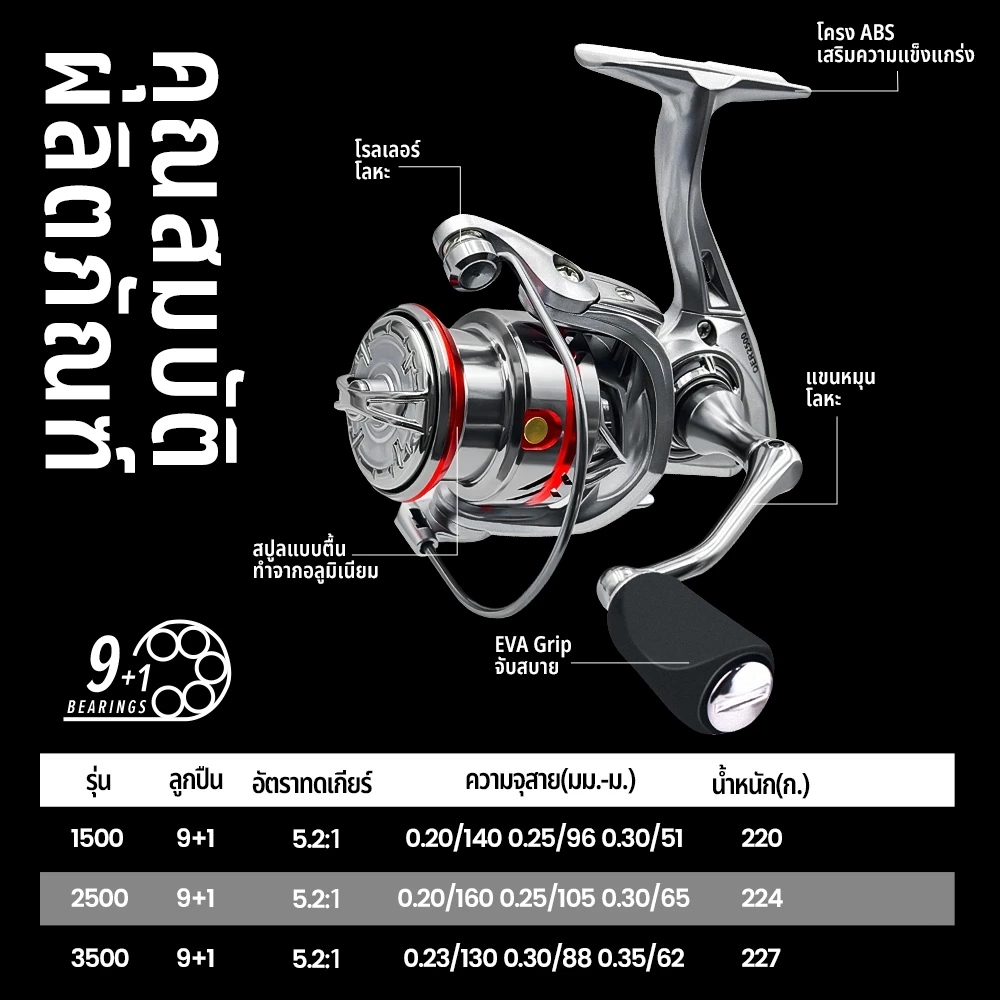 รอกตกปลา รอกสปินนิ่ง Gear Ratio 9.2:1 MAX DRAG 100KG รอกสปินถูกๆ คาร์บอนล่อหล่อซ้ายและขวามือรอกตกปลา