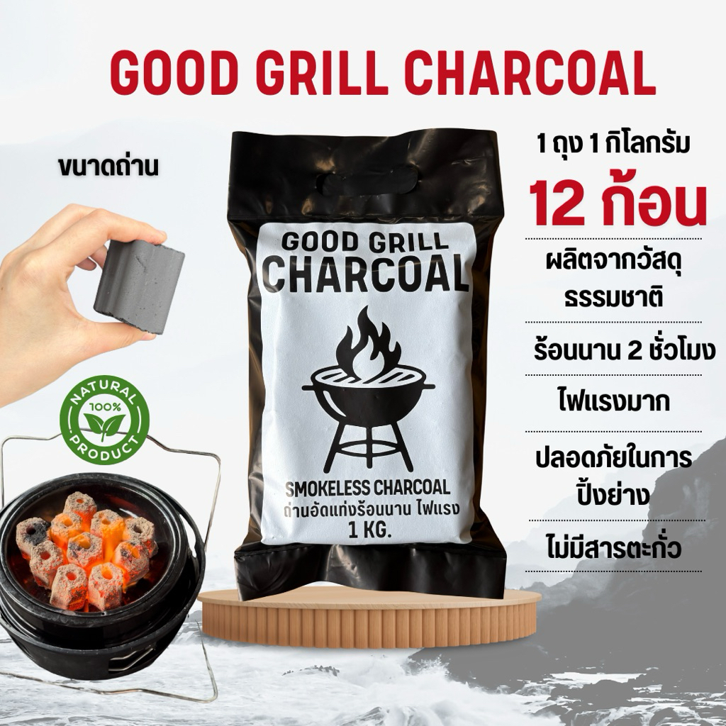 ถ่านอัดแท่ง ถ่านไร้ควัน 1ลัง 12ถุง 12 กิโลกรัม (ถุงละ1กิโลกรัม)ติดไฟนาน 3 ชั่วโมง ถ่านบาร์บีคิว