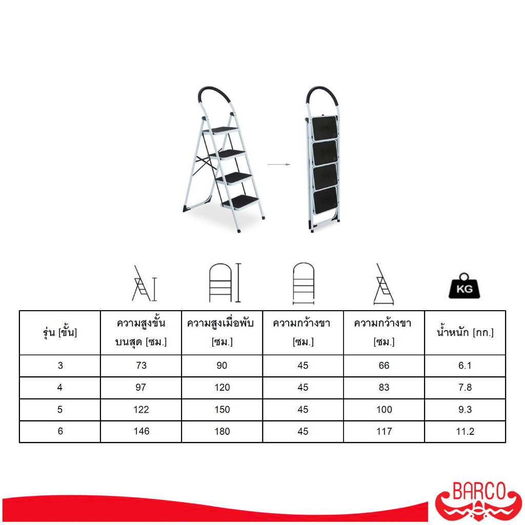 BARCO บันไดเหล็กกล้ามีราวจับ สีขาว