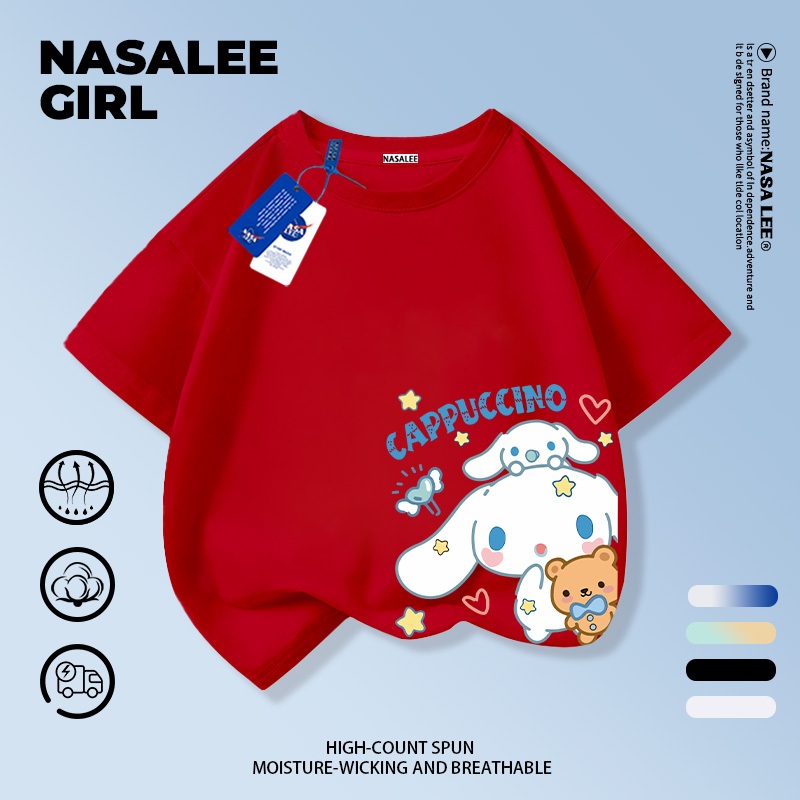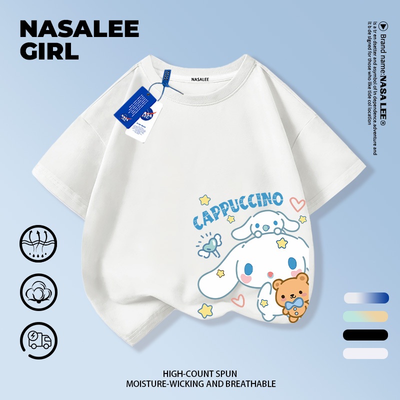 【จัดส่งทันที】เสื้อยืดเด็ก NASA สีฟ้าอ่อน ผ้าฝ้ายระบายอากาศดี ลายคินาโคโรม (Cinnamoroll) สำหรับเด็กอายุ 3-16 ปี