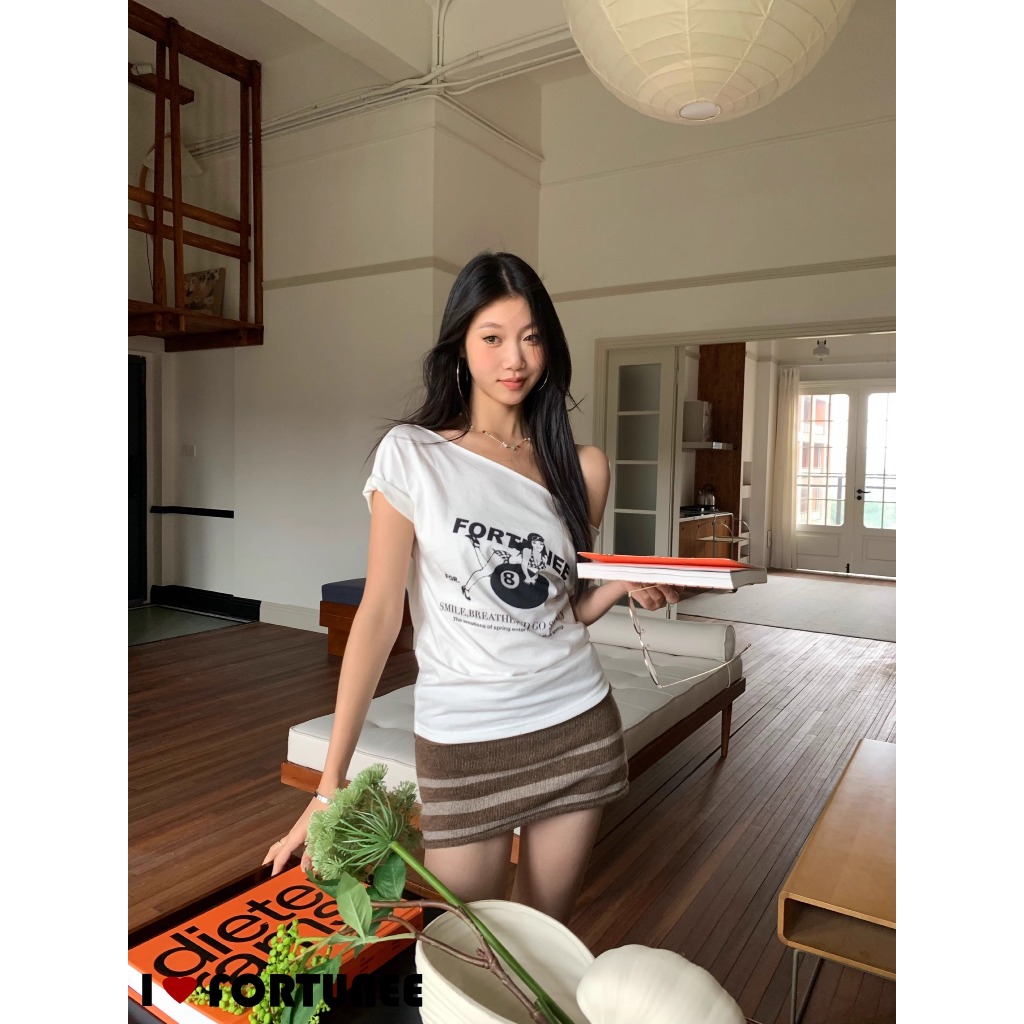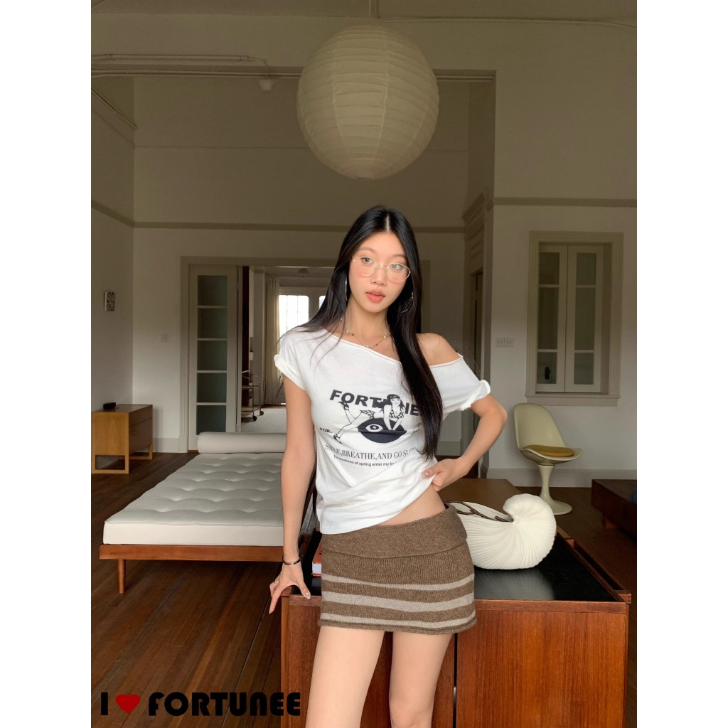 ❣Fortunee ❣ กระโปรงสั้นเข้ารูปลายทาง ถักไหมพรมพับเอว เอวต่ำ สไตล์สาวแซ่บ ไม่เหมือนใคร