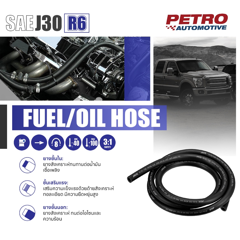 สายน้ำมันดีเซล เบนซิน R6 (ราคาต่อ 50 cm) ยี่ห้อ NCR สำหรับ น้ำมันเบนซิน และดีเซล ยกเว้นแก๊สโซฮอล์