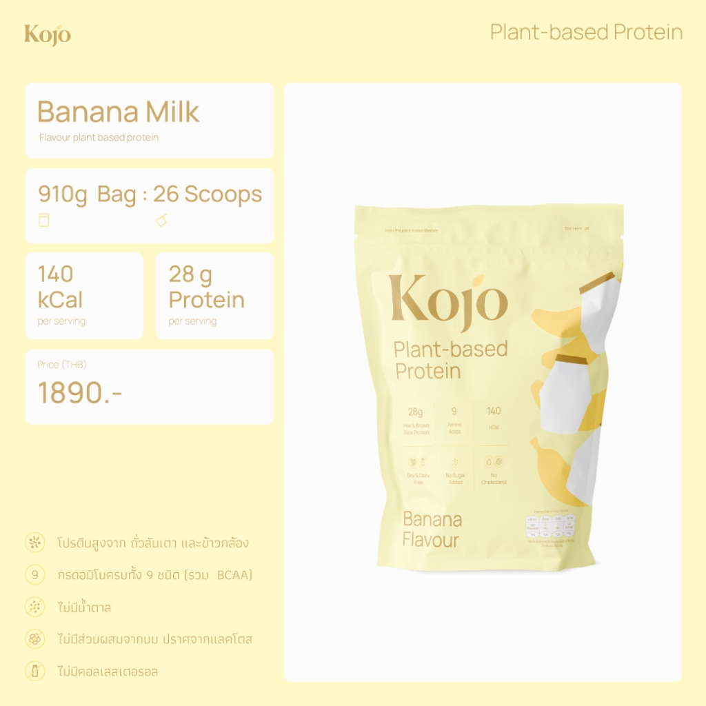 1 Bag: Kojo Plant Based Protein Banana Milk Flavour (910g) โปรตีนจากพืช รสนมกล้วย 1 ถุง
