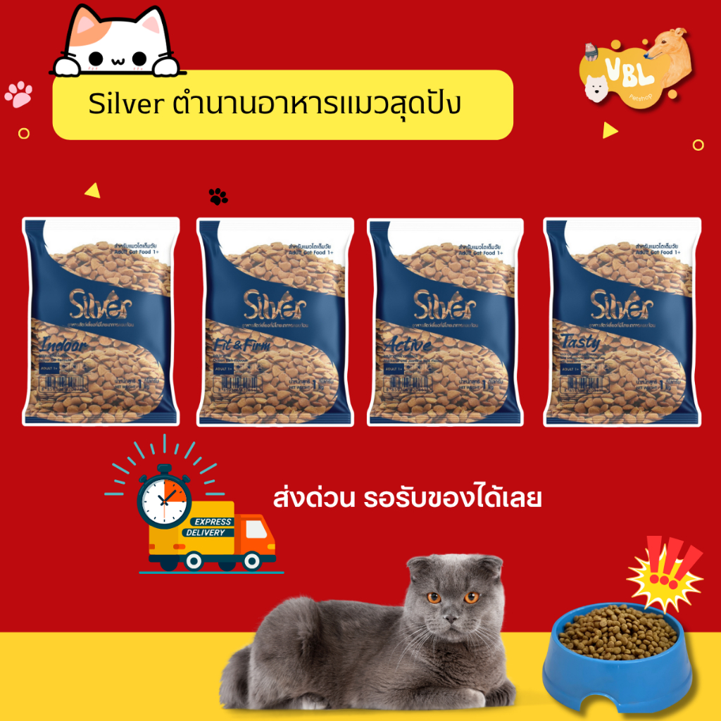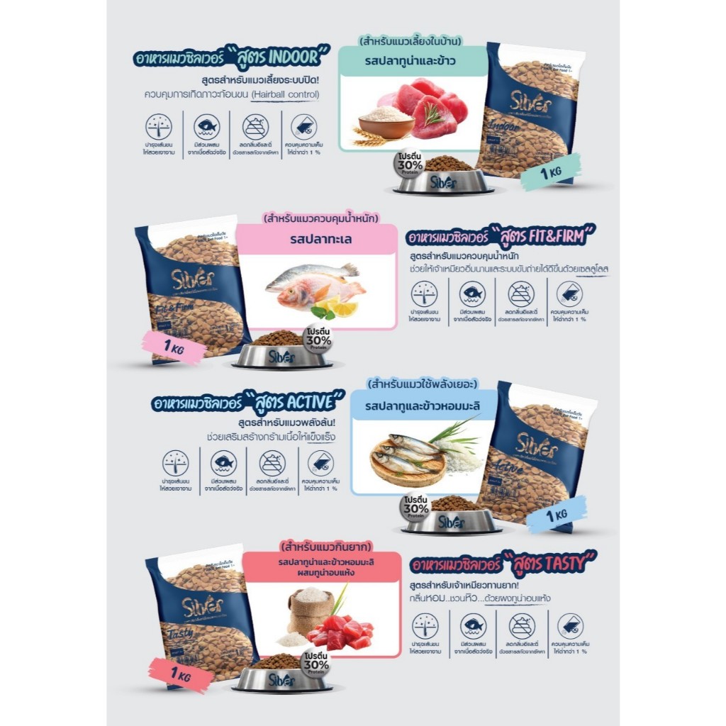 Silver อาหารแมวเกรดพรีเมียม ชิลเวอร์ สารอาหารครบถ้วน ขนสวย สุขภาพดี น้ำหนัก 1 กก.