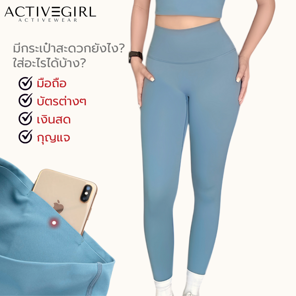 AGRL - ชุดออกกำลังกายเก็บพุง รุ่น Basic Slim fit (ขายแยกชิ้น) กางเกงมีแพรตเทิ้ลปิดพุง+มีกระเป๋า บราฟองน้ำเย็บติด