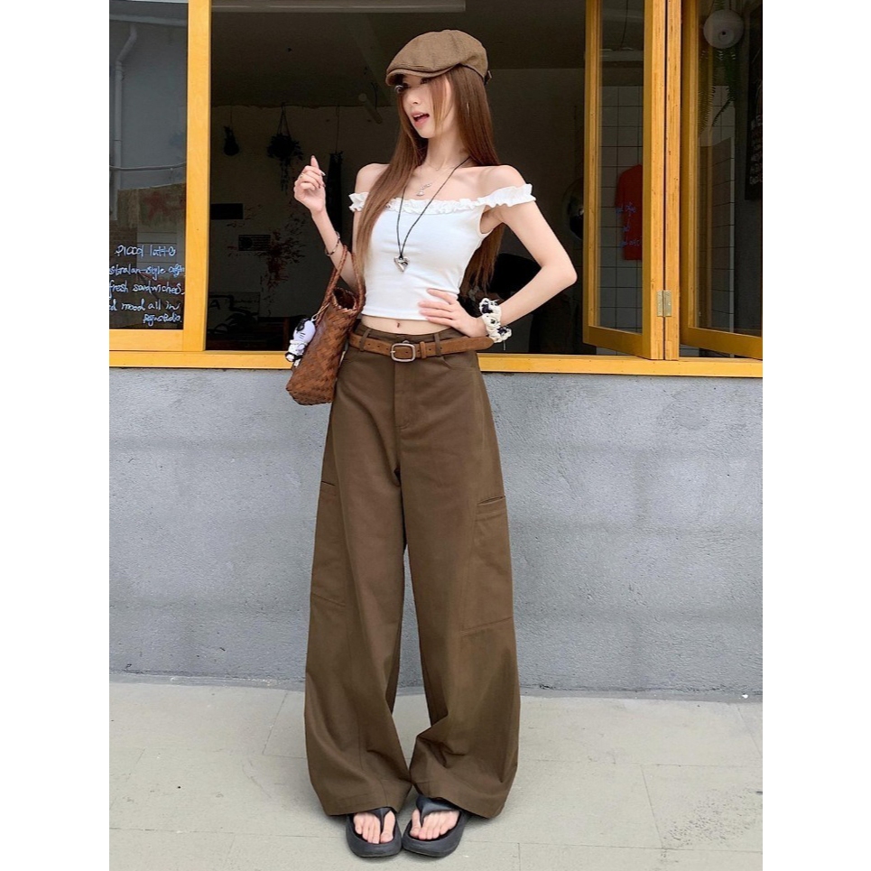 กางเกงขายาว กางเกงคาร์โก้ สไตล์เลซี่ มีกระเป๋าหลายใบ เข้ากับทุกสไตล์#J1237