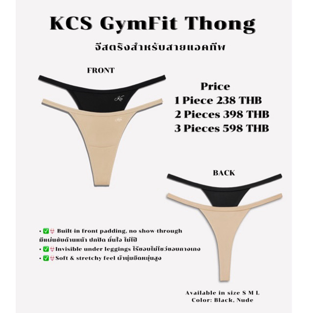 KCS GymFit Thong จีสตริงไร้ขอบ ด้านหน้ามีฟองน้ำ ผ้ายืดนุ่มกระชับ ใส่สบาย ไม่โป๊ะ No Camel Toe
