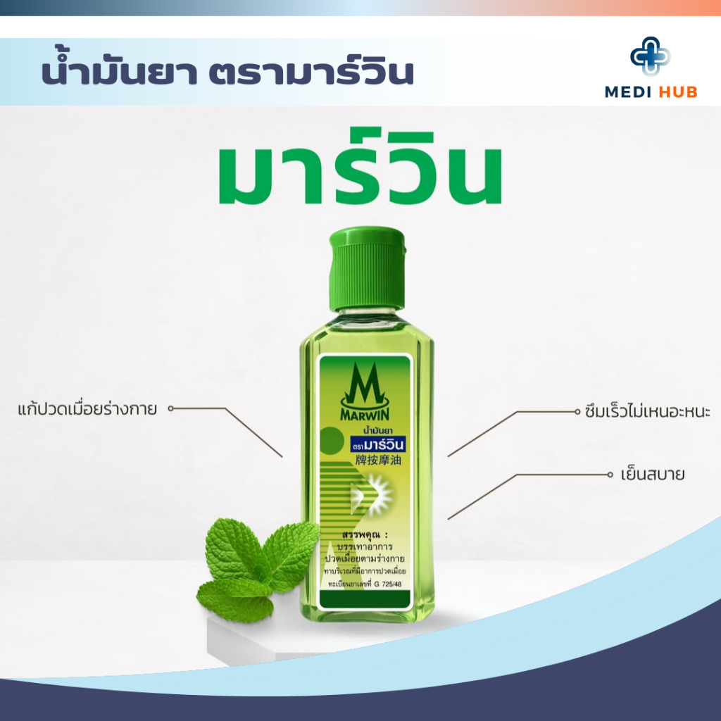 น้ำมันยานวดมาร์วิน (จำนวน 1 ขวด) MARWIN แก้ปวดเมื่อยตามร่างกาย