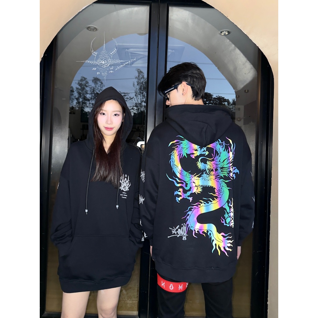 XOM509 เสื้อฮู้ดดี้ เสื้อฮู้ดแขนยาว ลายมังกรสะท้อนแสง XOMBRAND