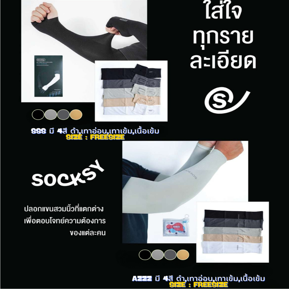 ปลอกแขนกันแดด Socksy Slim รุ่น AIR+เย็นสบาย ปกป้องรังสี UV 99%🌞 ผ้าบางเบาใส่สบาย พร้อมส่งทุกสี