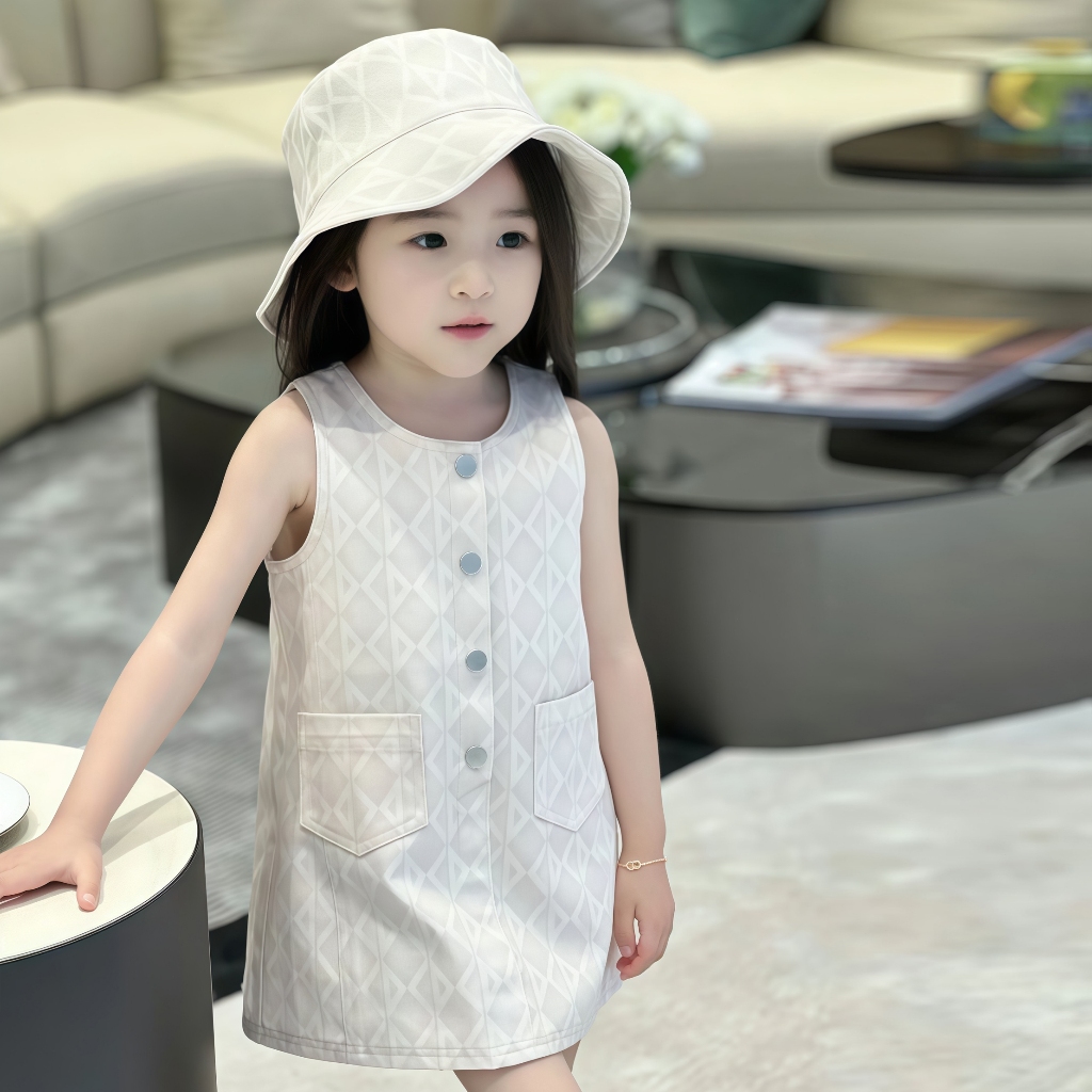 PRINCESS KESLI เสื้อผ้าเด็กเกาหลี เดรสแขนกุดลายตารางเพชรระดับสูง ชุดเด็ก 2-12 ปี