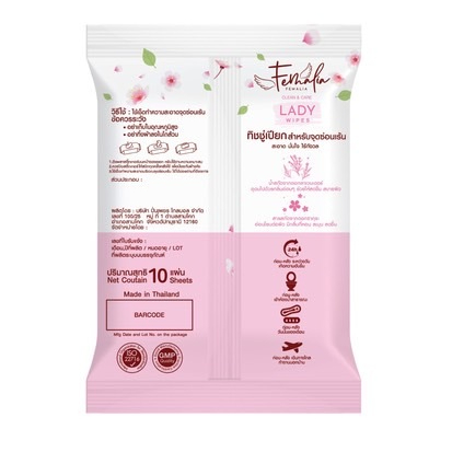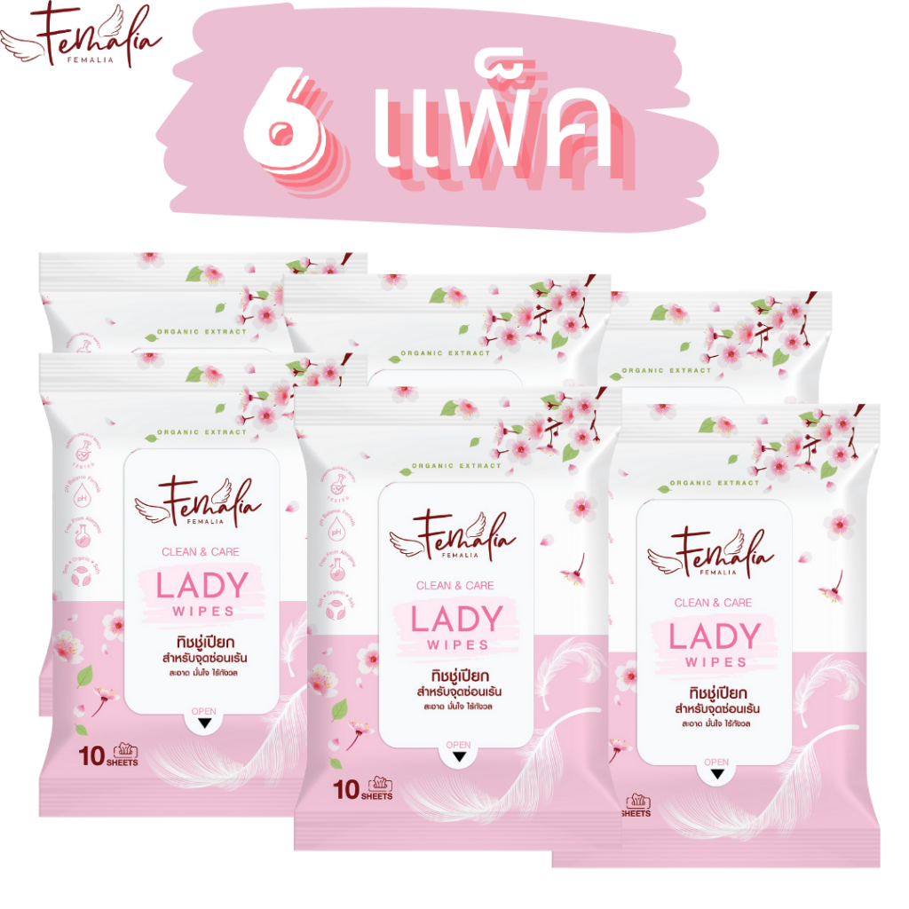 [6 แพ็ค] FEMALIA ทิชชูเปียก จุดซ่อนเร้น Lady Wipes ระงับกลิ่น ยับยั้งแบคทีเรีย สูตรอ่อนโยน ผู้หญิง