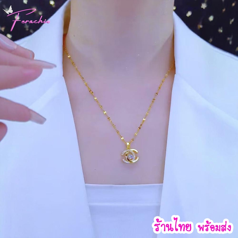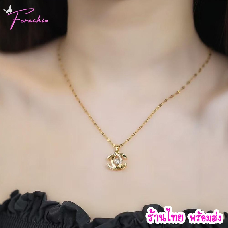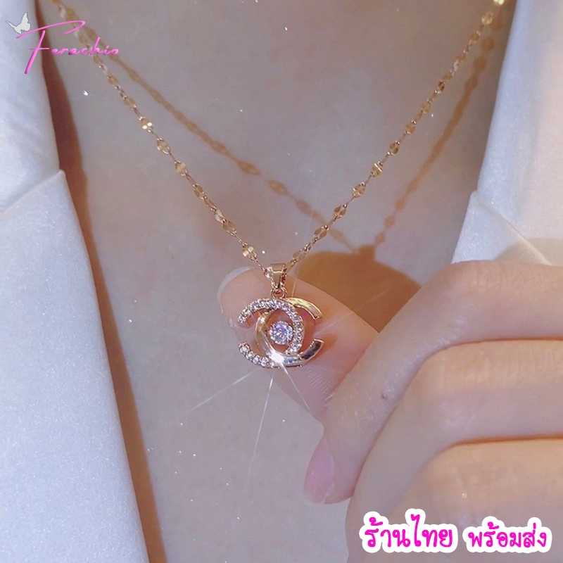 พร้อมส่ง ร้านไทย🇹🇭 สร้อยคอสแตนเลส-ไทเทเนียม จี้รูปตัว C ซ้อน โซ่ Lip ไม่ลอกดำ ดีไซน์เก๋ไก๋ หรูหรา