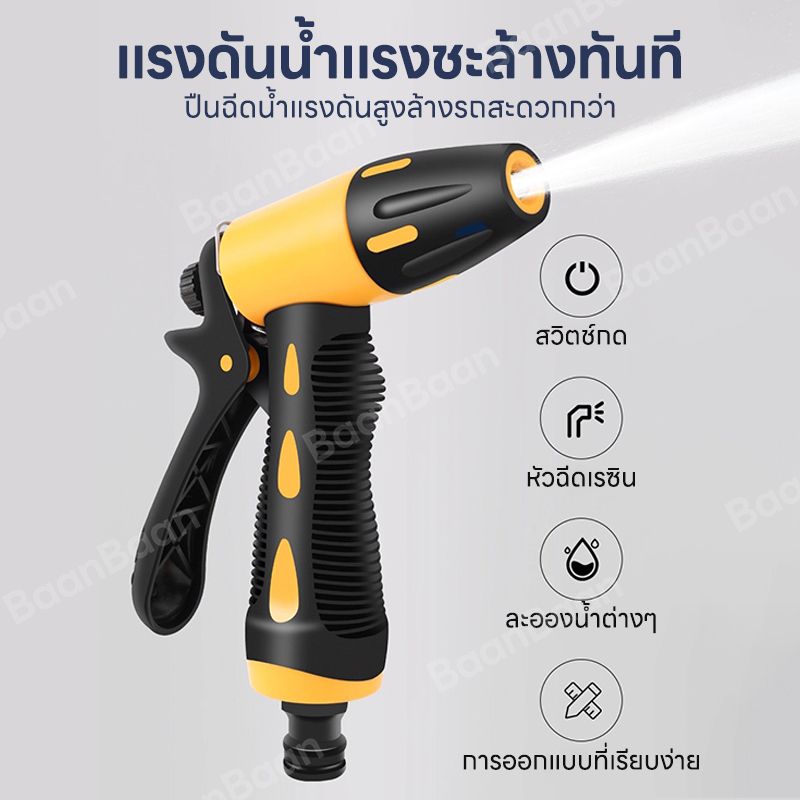 BaanBaan สายยาง ท่อน้ำหดได้ พร้อมหัวฉีดท่อน้ำ การล้างรถสะดวกมาก สายยางรดน้ำต้นไม้ หุนยาว 5ม./10ม./15ม./20ม