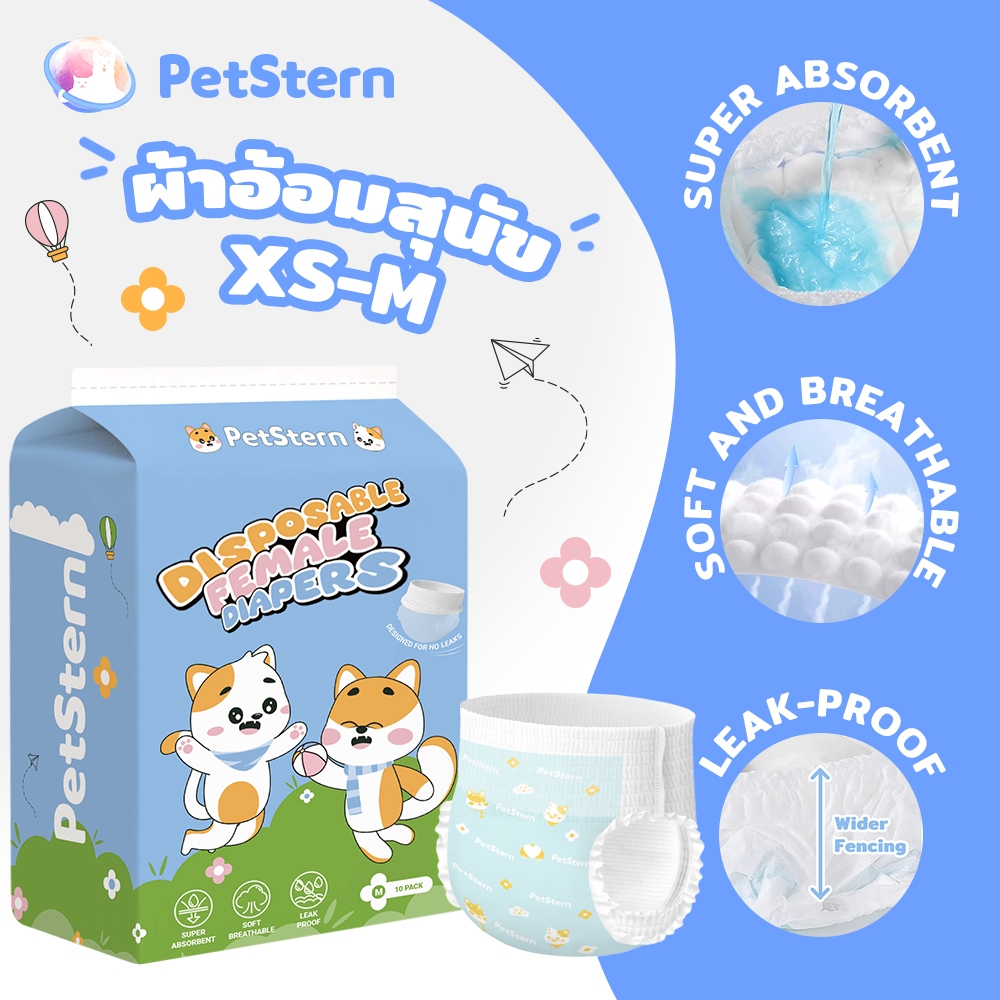 PetStern ผ้าอ้อมน้องหมา สุนัขดึงกางเกงและผ้าอ้อมสําหรับสัตว์เลี้ยง Females ซุปเปอร์ดูดซับ แห้งเร็ว ป้องกันการรั่วซึมแบบ