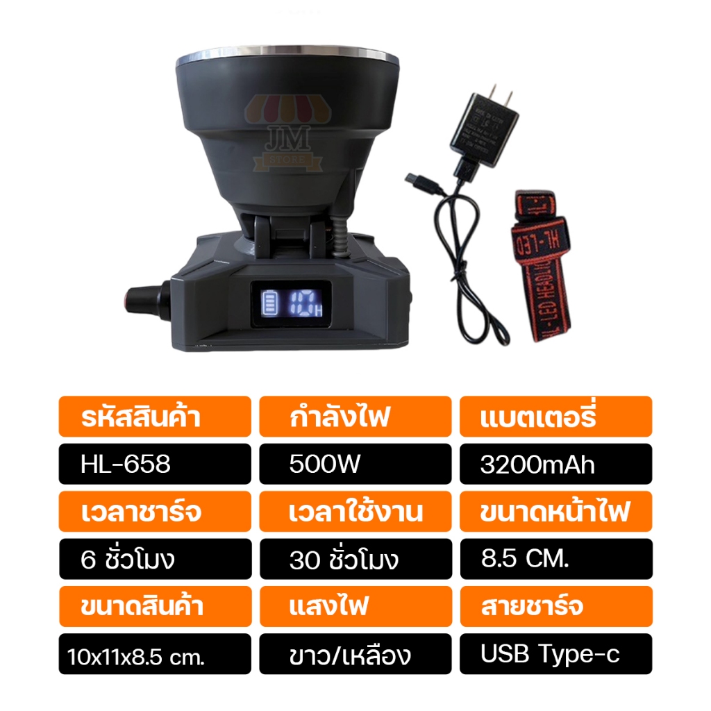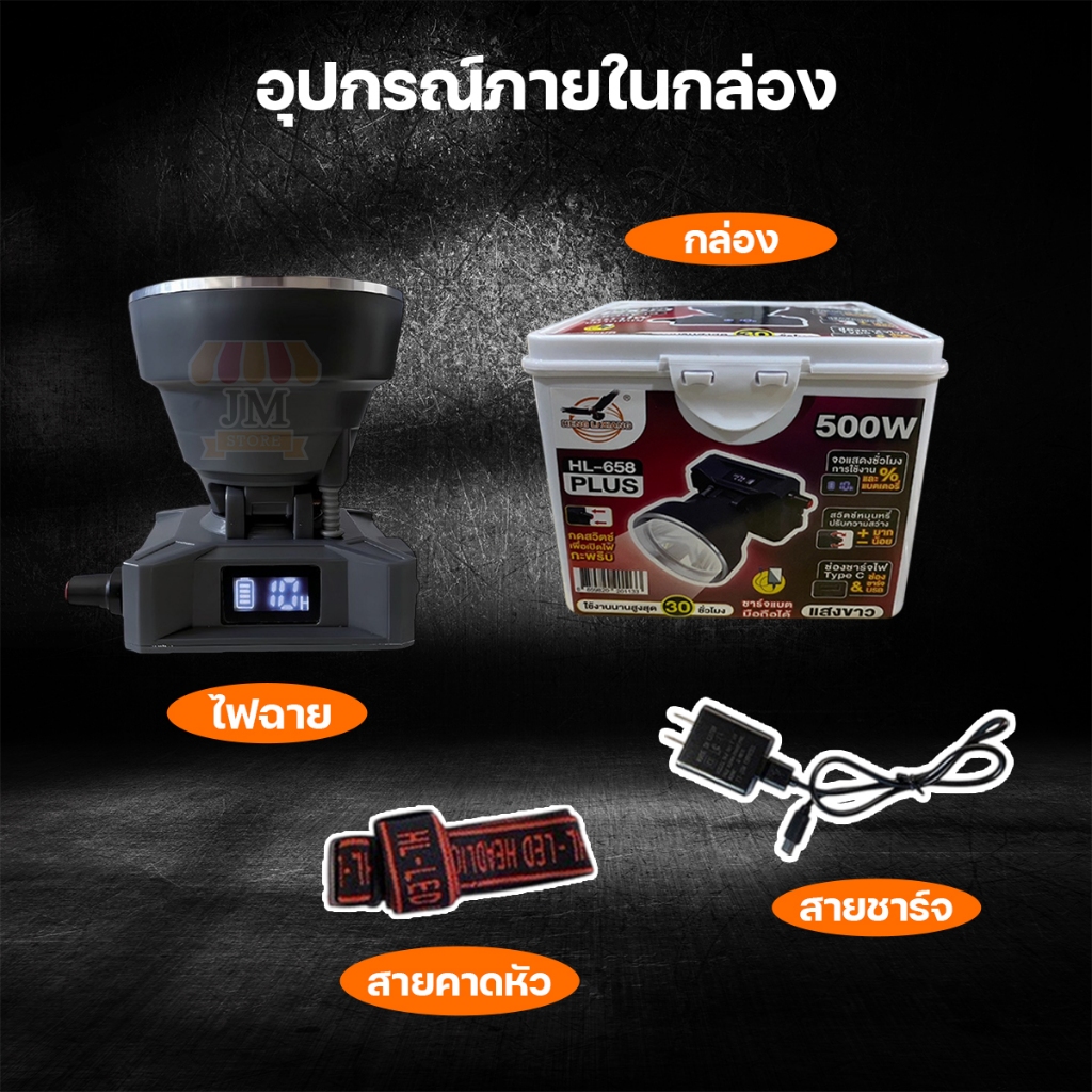 ไฟเดินป่า ไฟฉายคาดหัว ยี่ห้อHLX ไฟฉายคาดหัวแท้ ตรานก LED ไฟส่องกบ ชาร์จแบตมือถือได้ กันฝน รุ่นHL-658