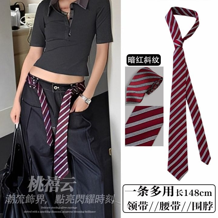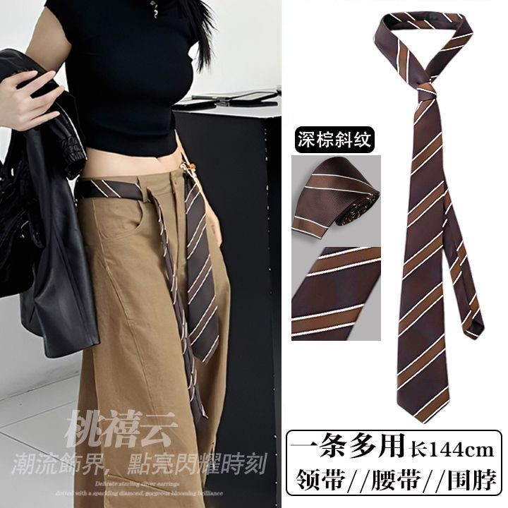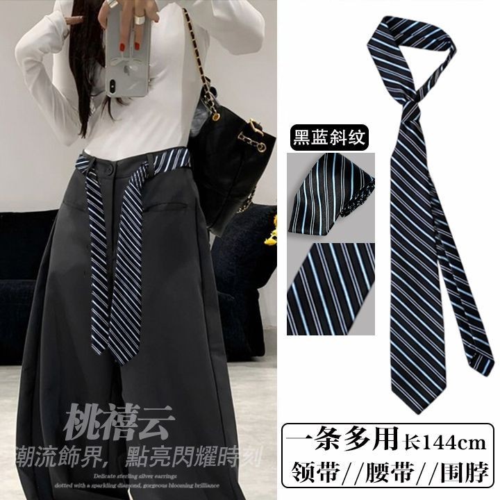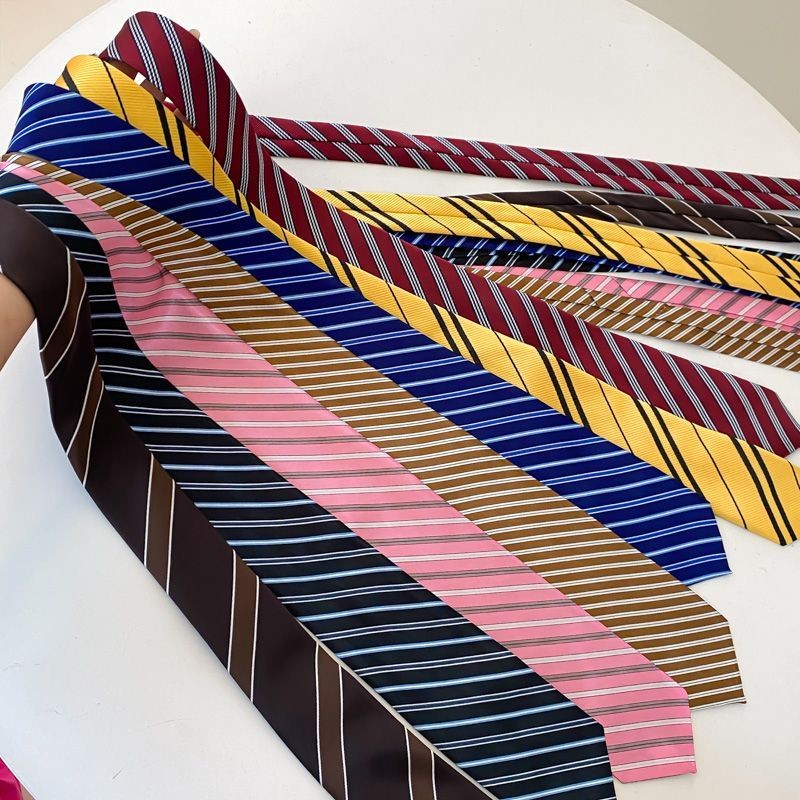 เนคไทและเข็มขัดแฟชั่น ลายทางย้อนยุค พร้อมผ้าพันคอไหม ไม่จำกัดเพศ