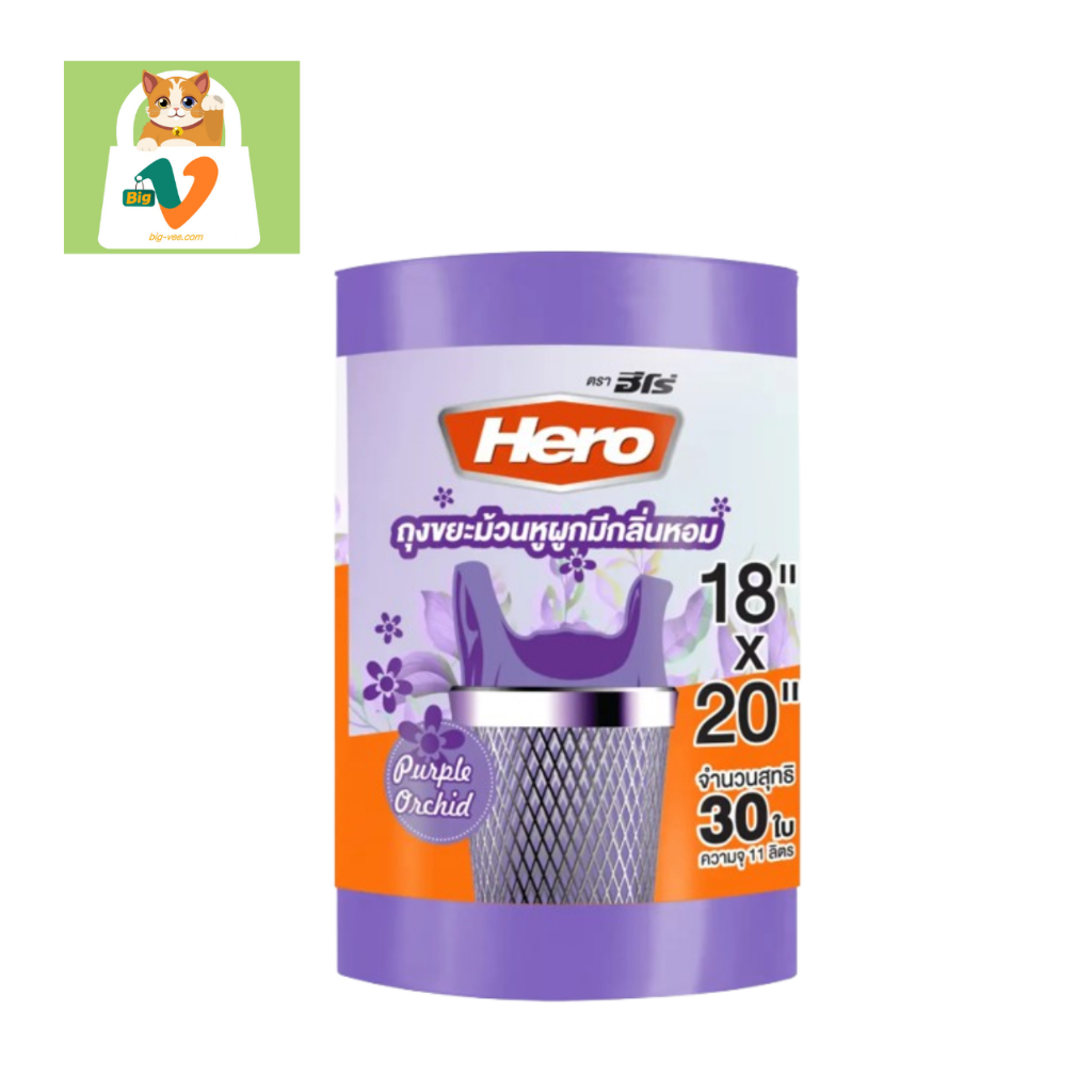 #9[Hero] ถุงขยะม้วนสีม่วงมีกลิ่นหอม (Purple Orchid) แบบมาตราฐาน (มีให้เลือก 2 ขนาด)