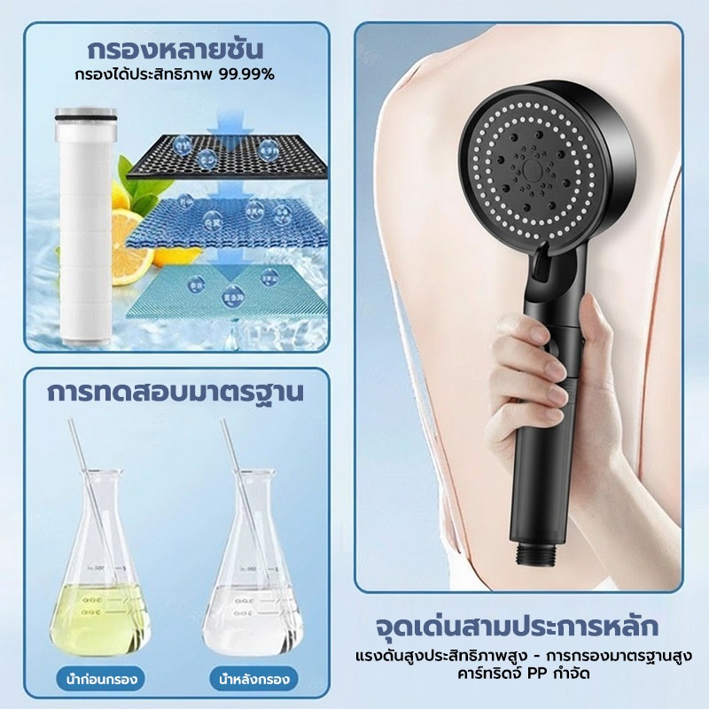 GREENIKA ชุดฝักบัวอาบน้ำกรองน้ำ ปรับแรงดันน้ำได้ ประหยัดน้ำ ป้องกันตะกรัน พร้อมไส้กรองสำรอง+สายยาง1.5m+วงเล็บ