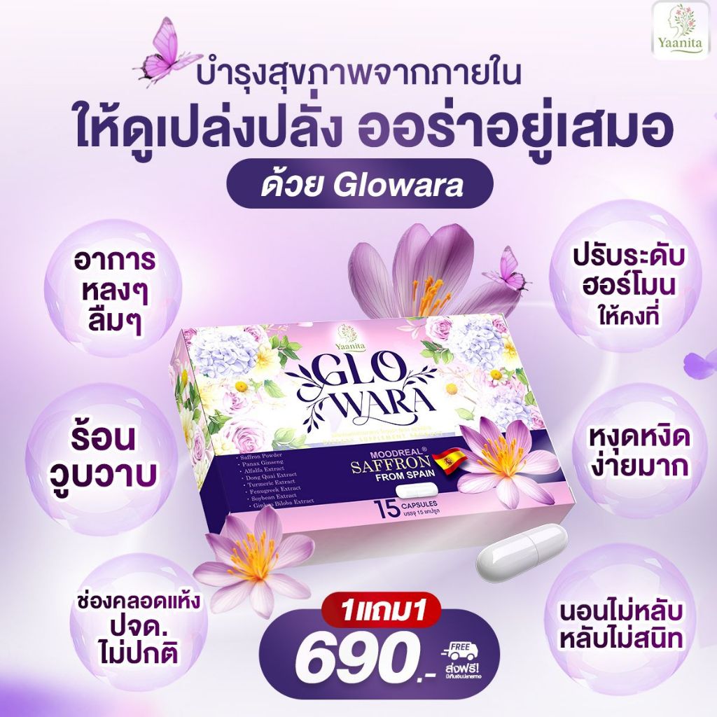 ของแท้ 💯 ✅ Glowara โกวอร่า Yaanita อาหารเสริม หนิงธัญญ่า ส่งตรงจากบริษัท ปรับสมดุลฮอร์โมนผู้หญิง