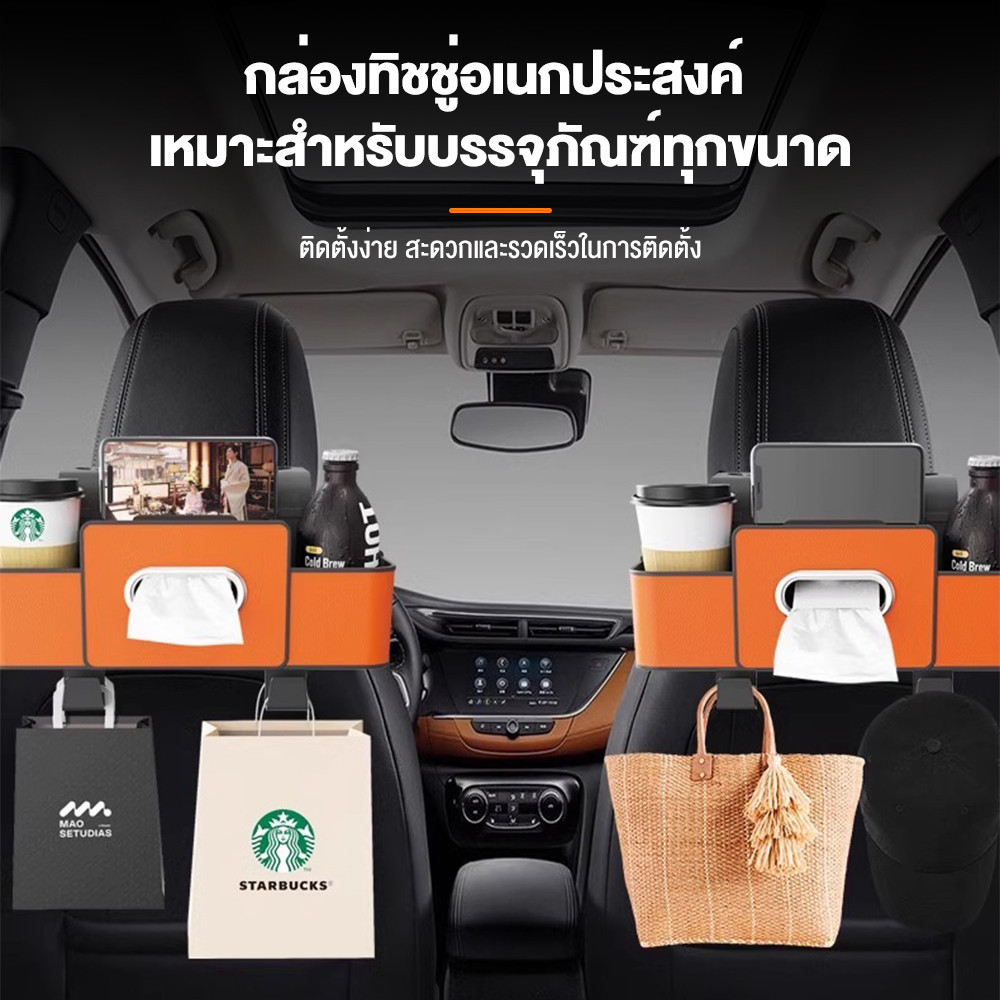 กล่องเก็บของด้านหลังเบาะรถยนต์ ตะขอพนักพิงเบาะรถยนต์ ที่วางกระดาษทิชชู่ในรถยนต์อเนกประส วัสดุหนัง