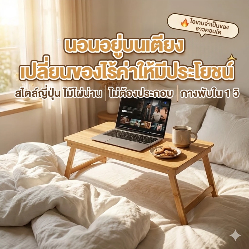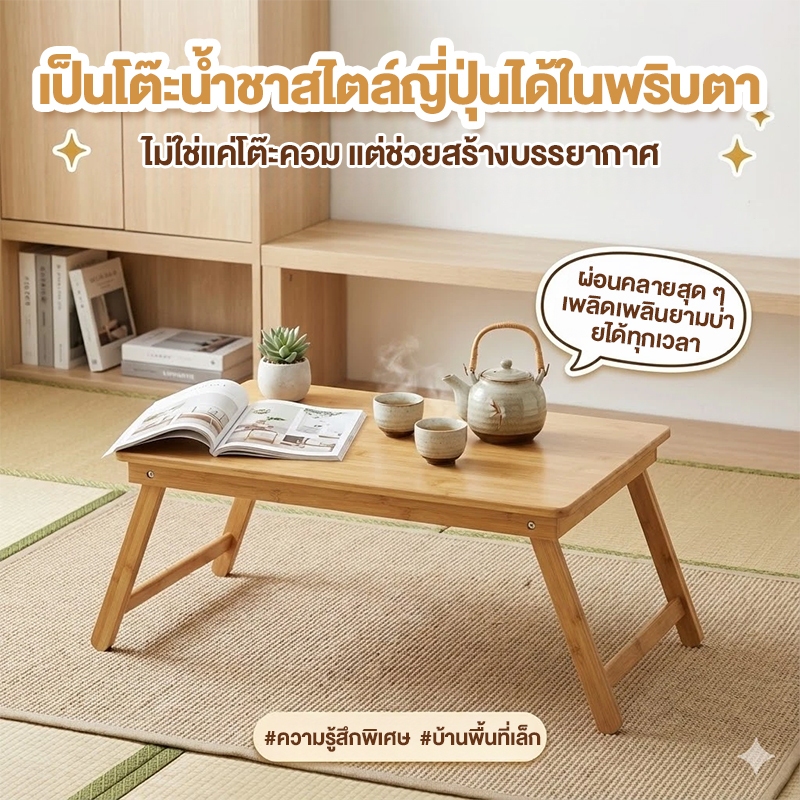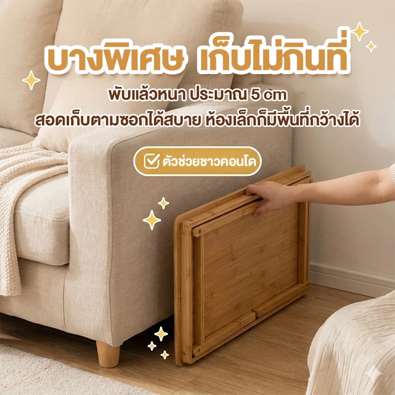 🛒 [Bubu] ✨ โต๊ะญี่ปุ่น แข็งแรง พับได้ ทนทาน ประหยัดพื้นที่ ทำโดยไม้ไผ่ธรรมชาติ โต๊ะวางของอเนกประสงค์