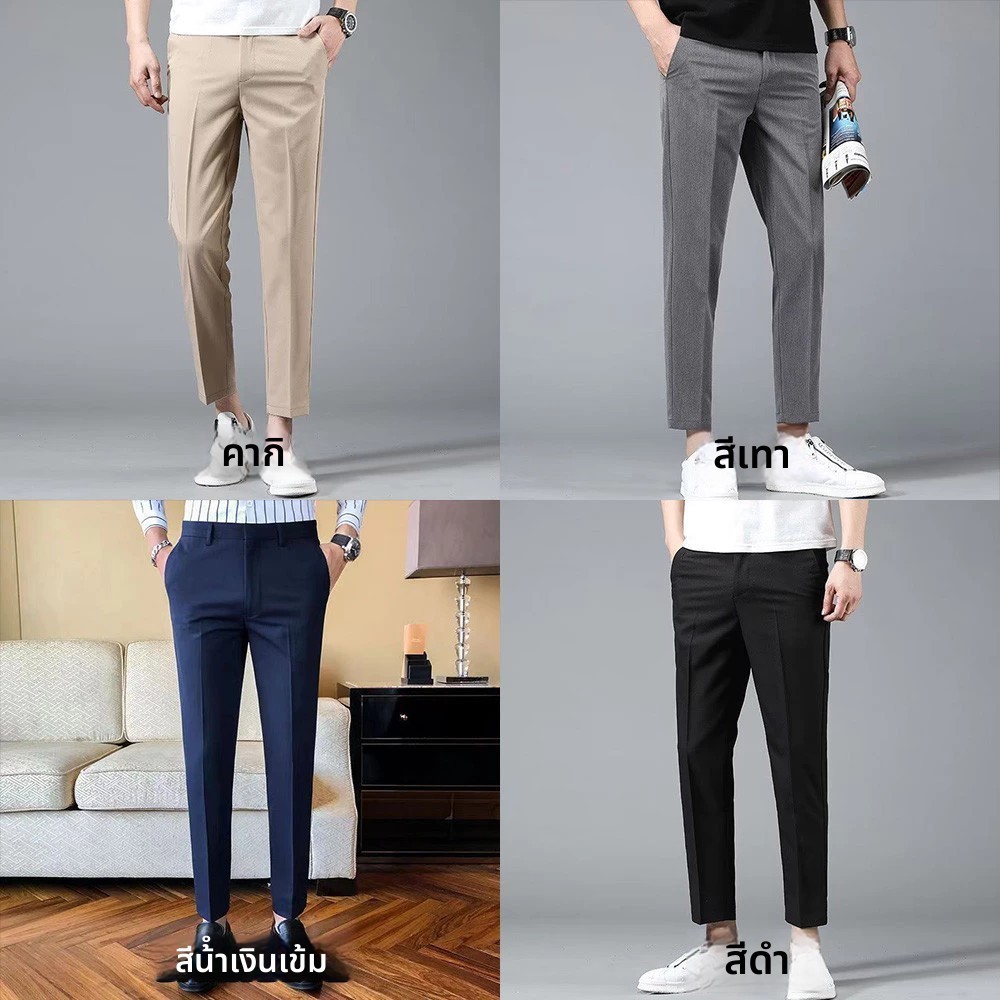 กางเกงทำงานผู้ชาย สไตล์.slim fit และcropped สำหรับธุรกิจและสไตล์ทางการและลำลอง