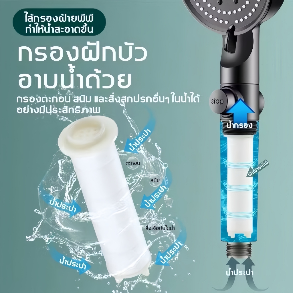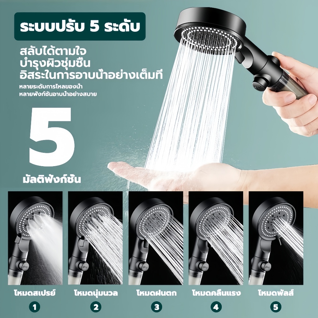 ฝักบัวกรองน้ำ 5 Spray กบัวกรองน้ำ Shower Filter ฝักบัวแรงดันสูง ปรับได้ 5 ระดับ Cotton Micro Filter