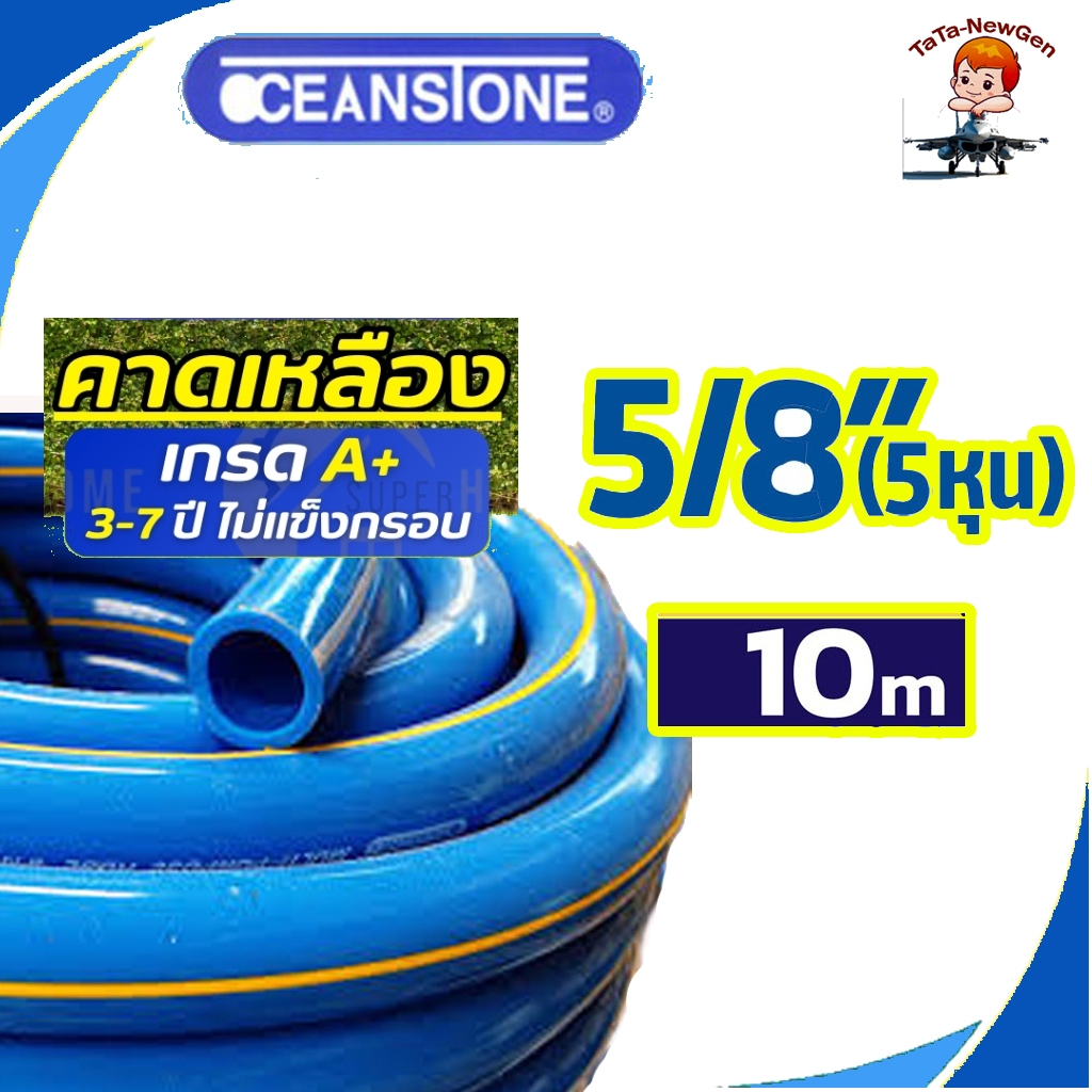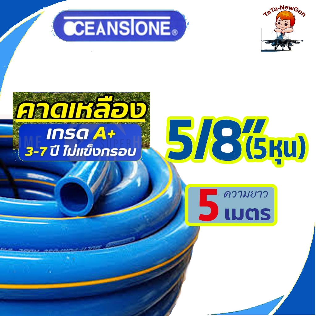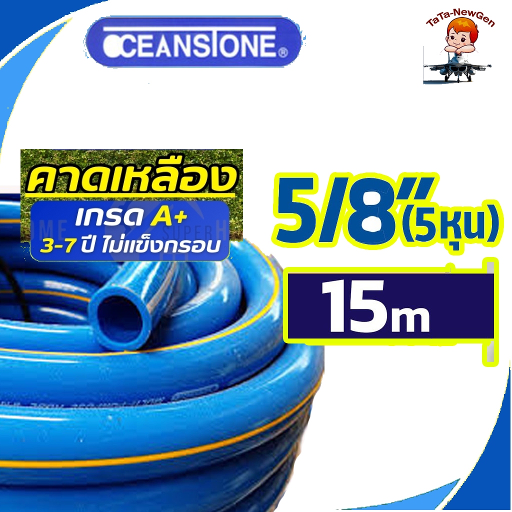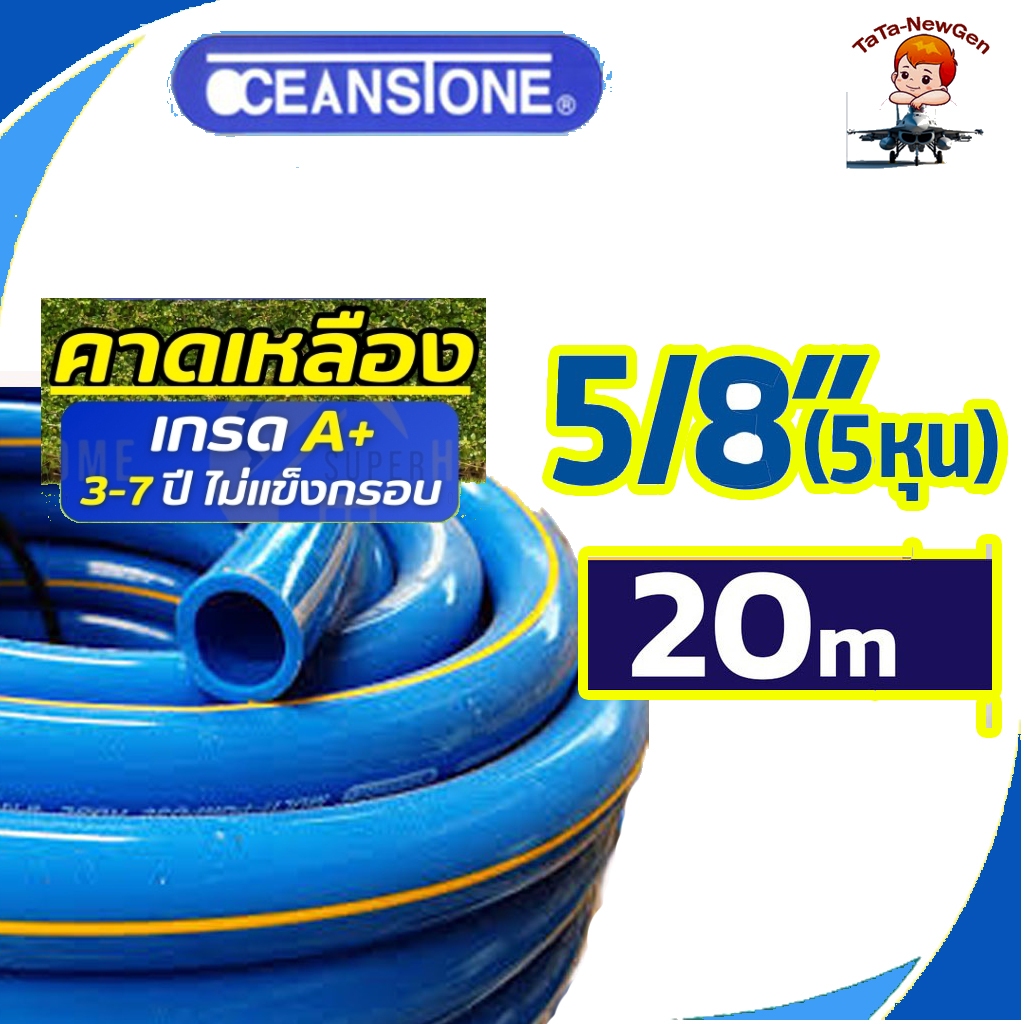 OCEANSTONE (สายยางฟ้าคาดเหลือง) สายยาง 5/8"(5หุน) เกรด A+ แบ่งขายมีให้เลือก ความยาว 5-20 เมตร ของแท้