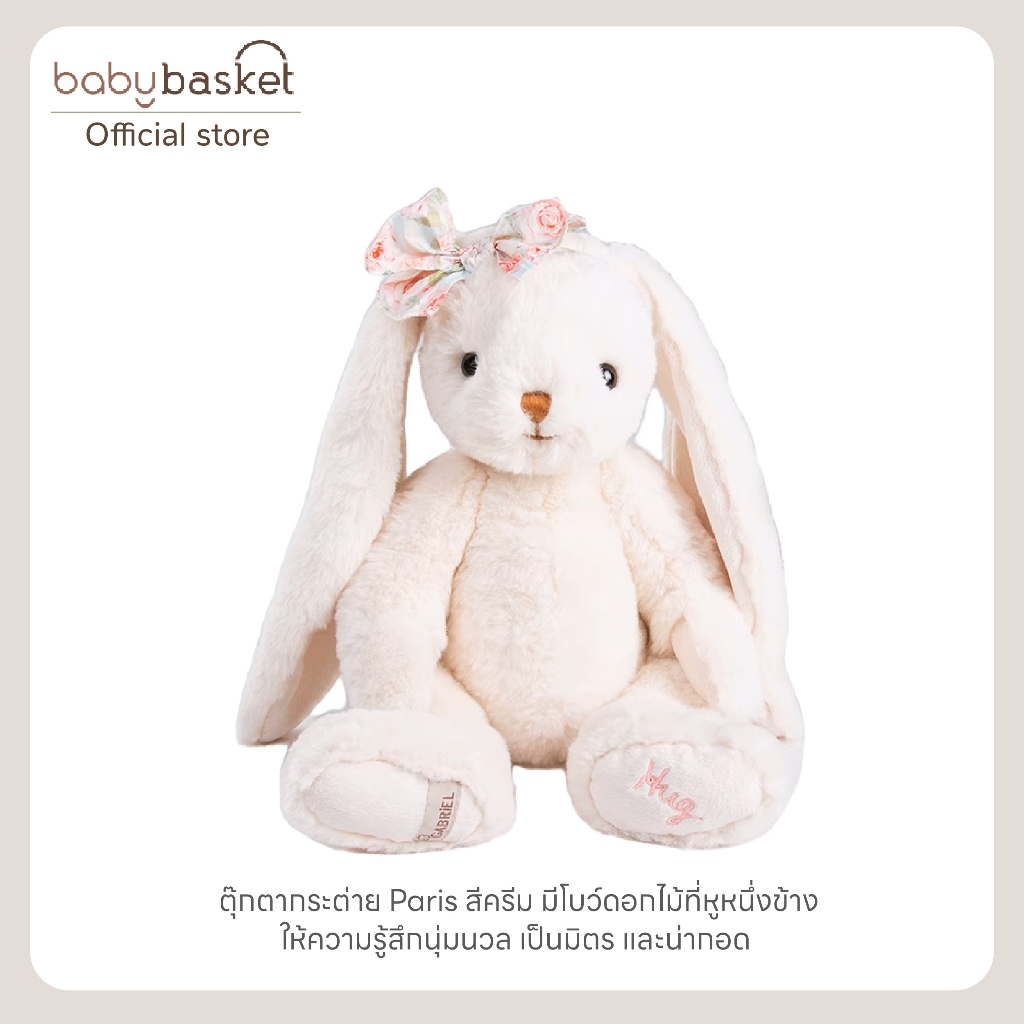 Gabriel Paris - ตุ๊กตากระต่าย Paris สีครีม มีโบว์ดอกไม้ที่หูหนึ่งข้าง ให้ความรู้สึกนุ่มนวล เป็นมิตร และน่ากอด