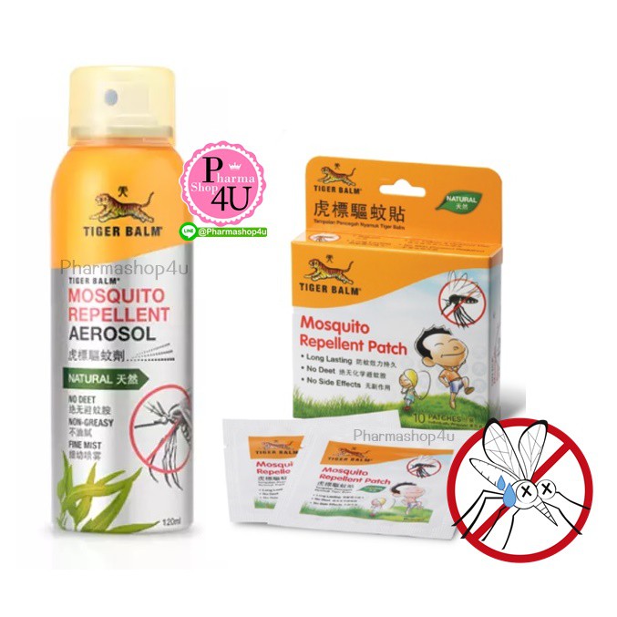 TIGER BALM MOSQUITO 10ชิ้น แผ่นแปะกันยุง / Mosquito Repellent Aerosol Spray 120ml Tiger balm