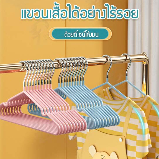 ไม้แขวนเสื้อเด็ก ไม้แขวนเสื้อสแตนเลส เคลือบซีลีโคนกันลื่น 2ขนาด เด็ก30cm/40cm จัดส่งที่รวดเร็ว COD