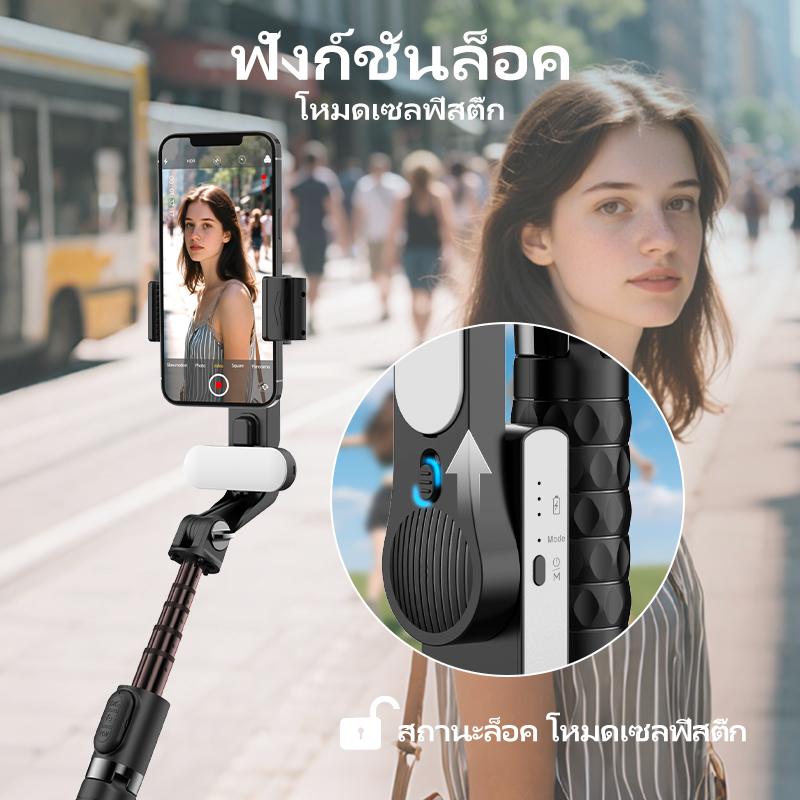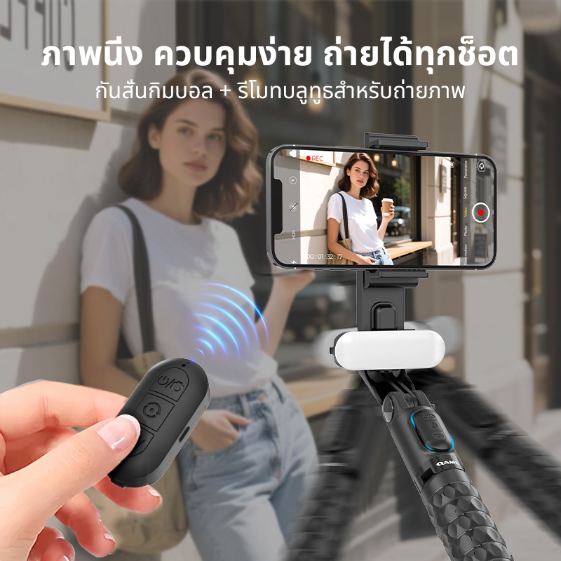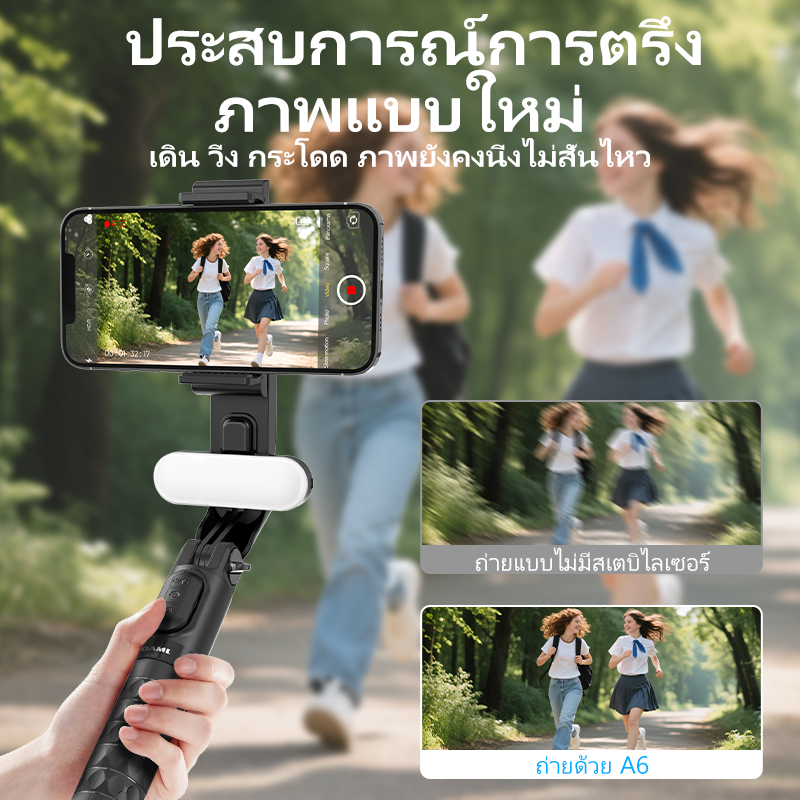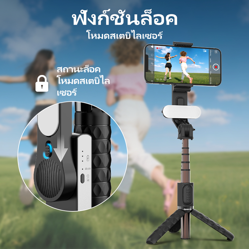 QAML A6 ไม้เซลฟี่กันสั่นมา Gimbal Stabilizer พร้อมขาตั้งอัจฉริยะพร้อมไฟLED พร้อมรีโมทบลูทูธ
