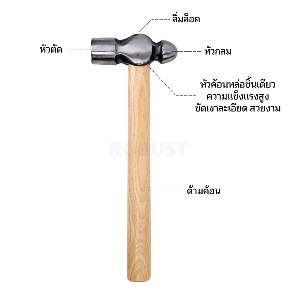 ค้อนหัวกลมด้ามไม้ หัวเหล็กกล้าคาร์บอน Ball-peen hammer