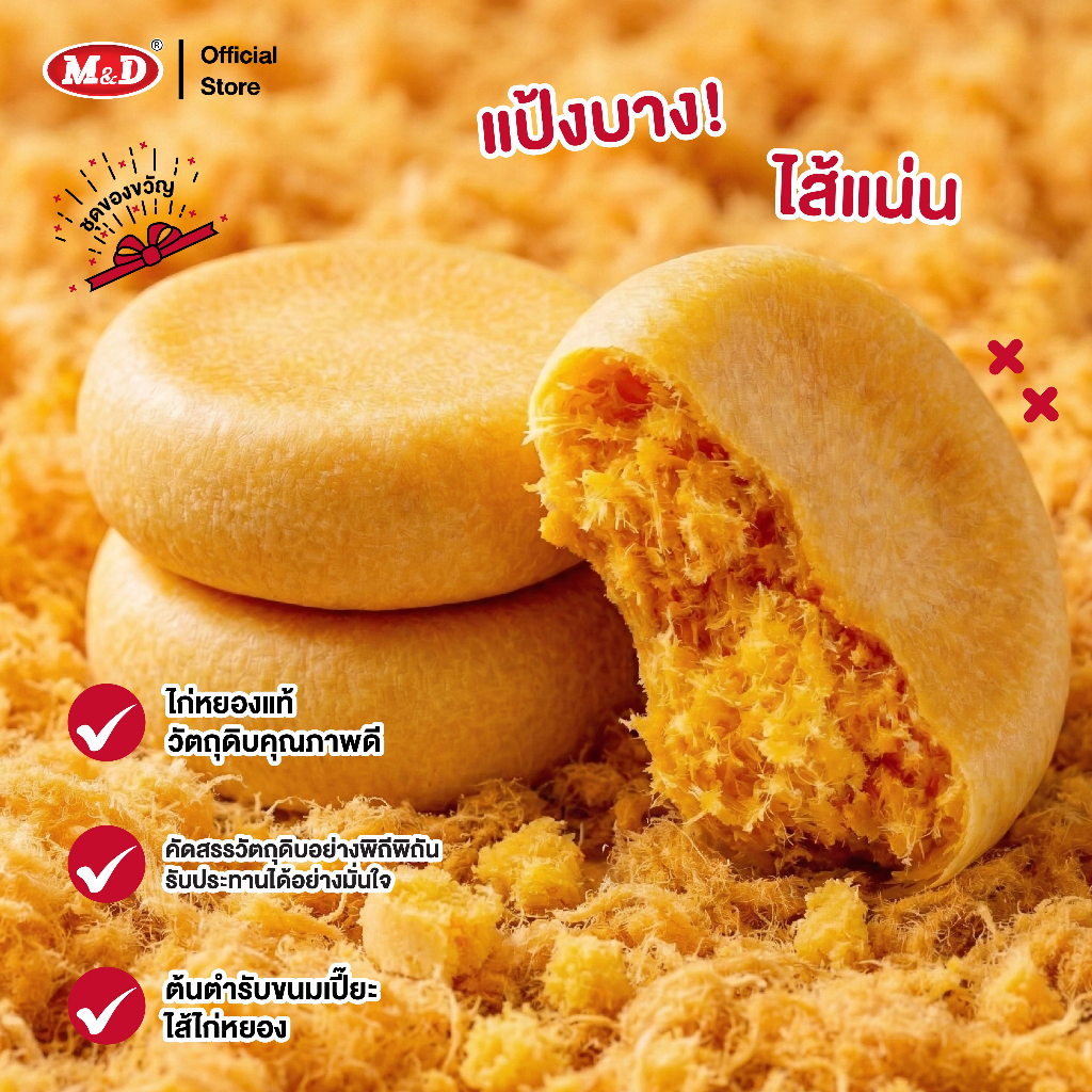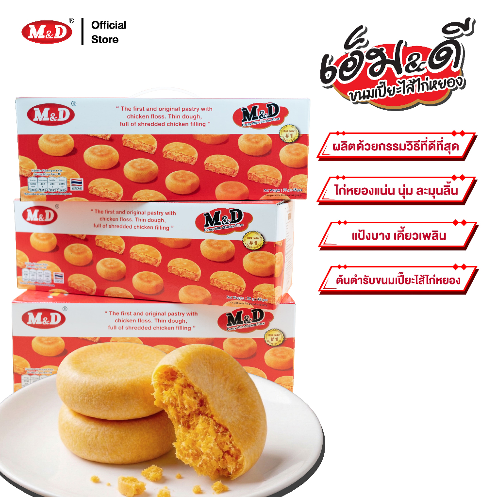 M&D ขนมเปี๊ยะไส้ไก่หยอง(ชุดของขวัญ)48 ชิ้น ขนมเปี๊ยะไส้ไก่หยอง M&D แป้งบางกรอบ ไส้ไก่หยองเต็มคำ