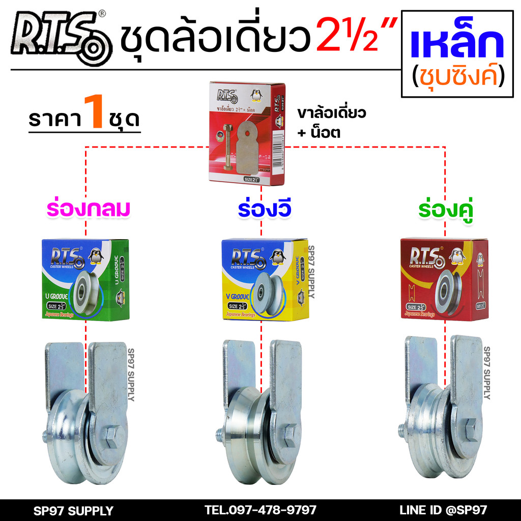 RTS ชุดล้อเดี่ยว ล้อประตู ล้อเหล็ก ชุบซิงค์ ขนาด 2.5 นิ้ว (เลือกรูปแบบล้อได้) สำหรับ ล้อประตูบ้าน ประตูรั้ว