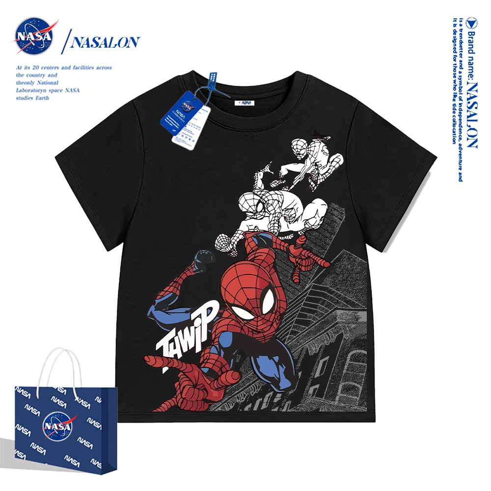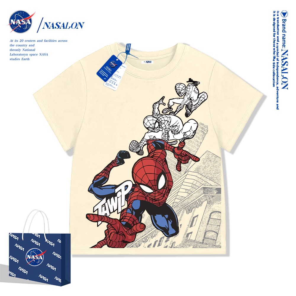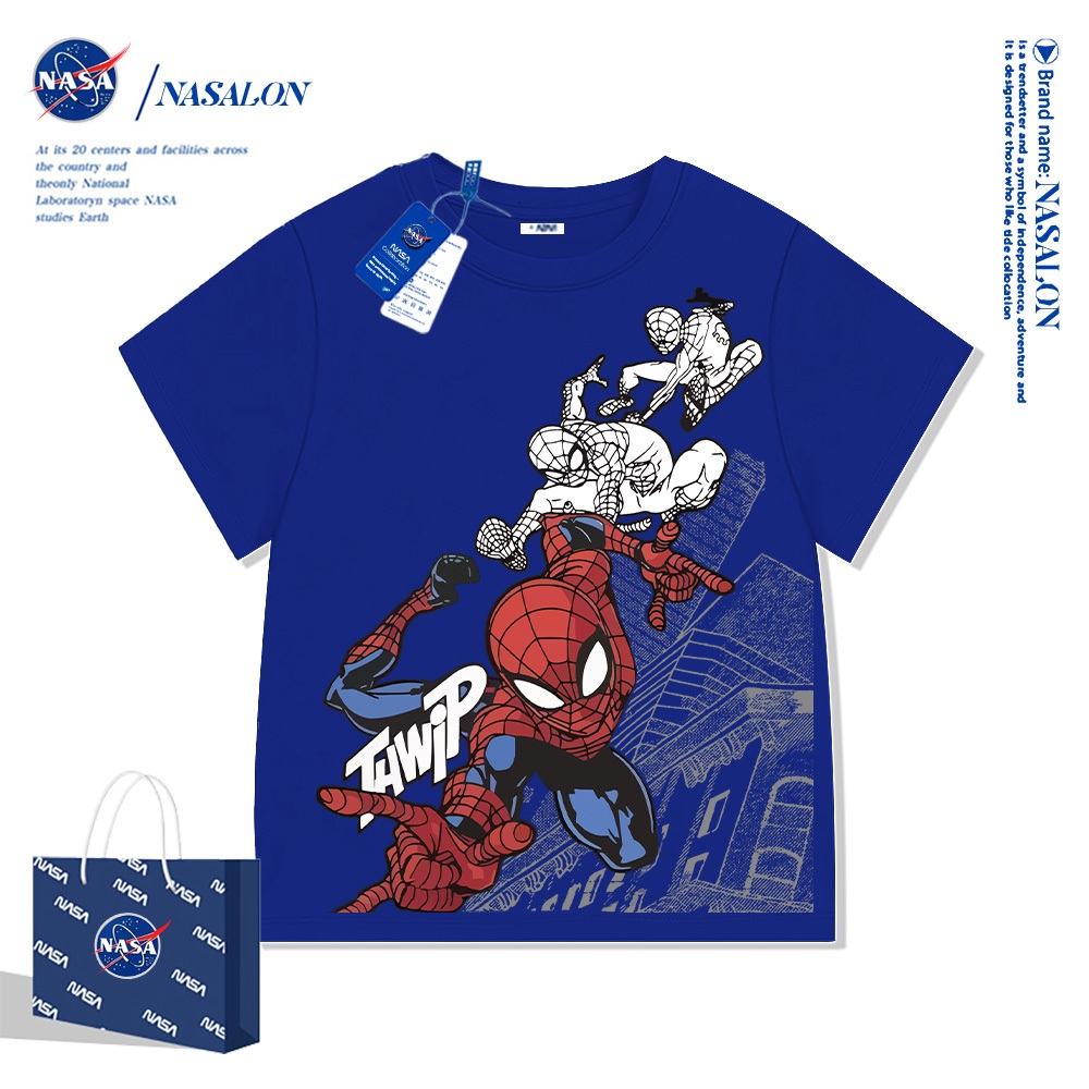 NASA เสื้อยืดเด็กแขนสั้น ลายการ์ตูนสไปเดอร์แมน เสื้อยืดเด็กผู้ชาย cotton 100% นุ่มสบาย สไตล์เกาหลี คุณภาพด