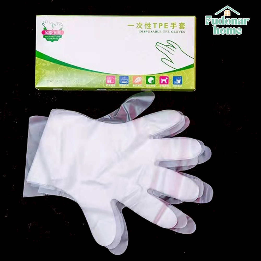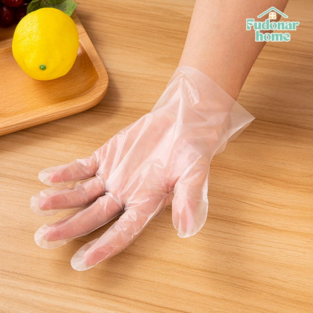 Fudonar ถุงมือใช้แล้วทิ้ง ถุงมือพลาสติกใส กล่องดึงง่าย สำหรับทำอาหาร หยิบของสด ใช้แล้วทิ้ง