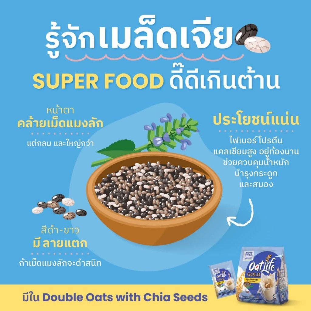 OatLife นมข้าวโอ๊ต รสดับเบิ้ลโอ๊ตผสมเมล็ดเจีย ตราโอ๊ตไลฟ์ 12ซอง/ถุง
