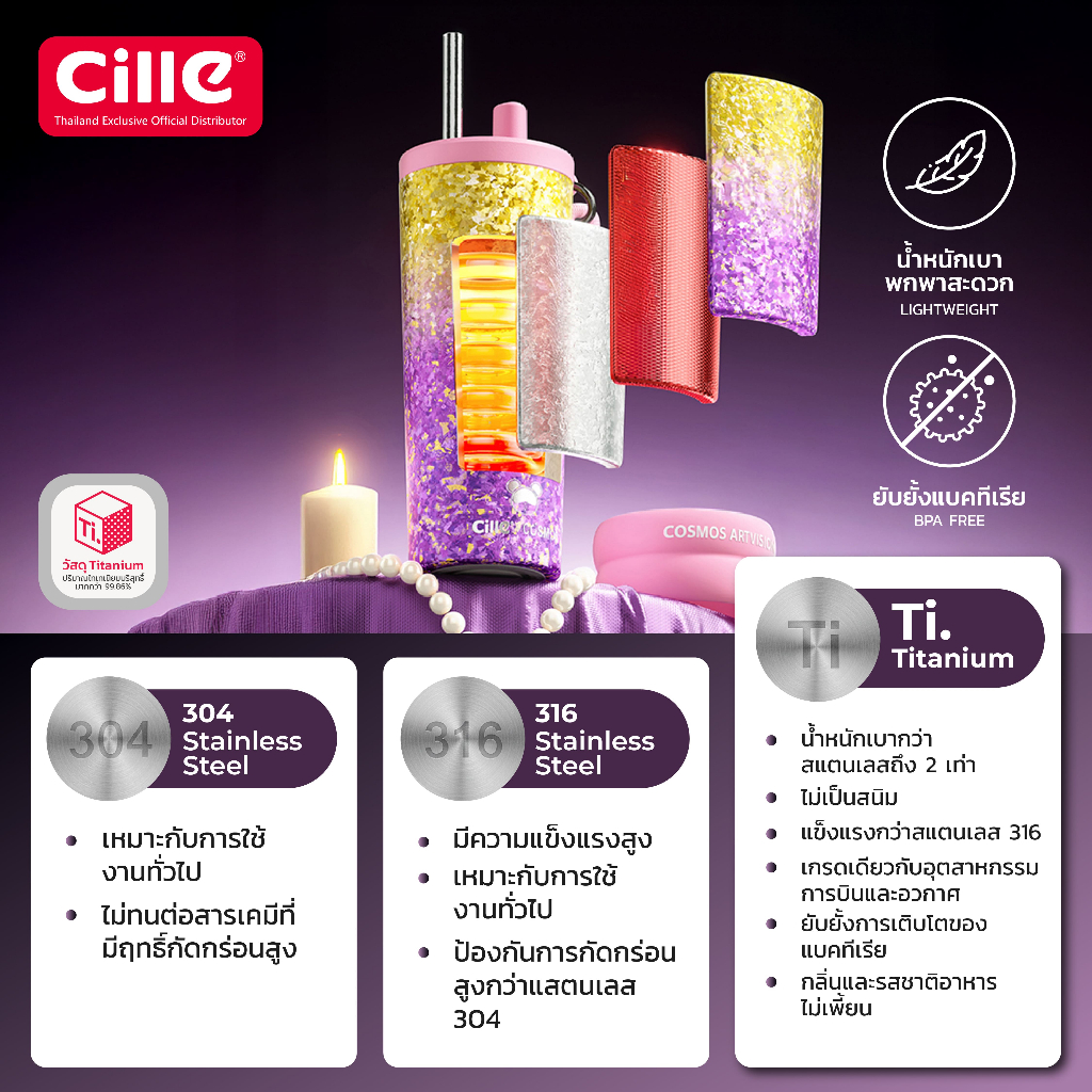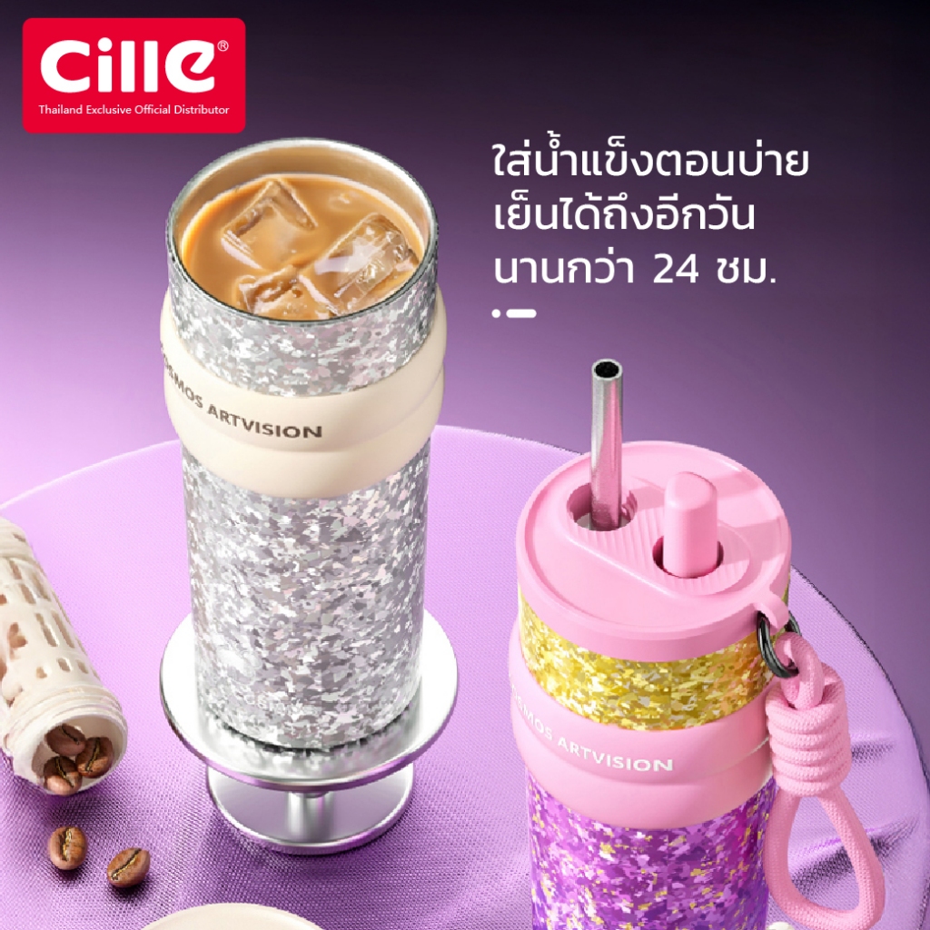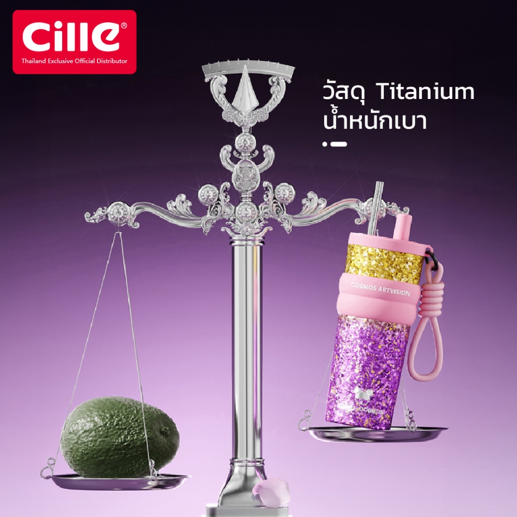 [รับประกัน 1 ปี] Cille Cosmo แก้วไทเทเนียม เก็บร้อน-เย็น มีหลอด สายคล้อง Vacuum Titanium Bottle 560ML รุ่น 25383