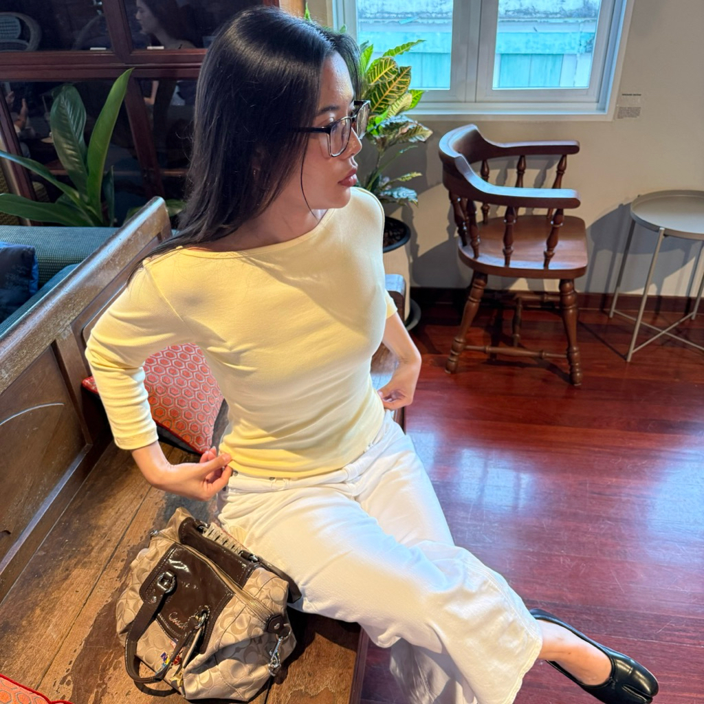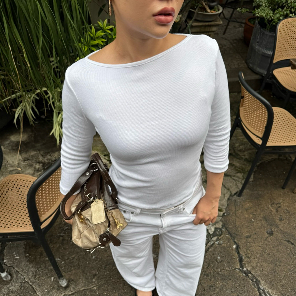 callingonme-jessi boat 3/4 sleeve top 03s เสื้อคอปาดผ้าร่องนุ่ม แขน 3 ส่วน