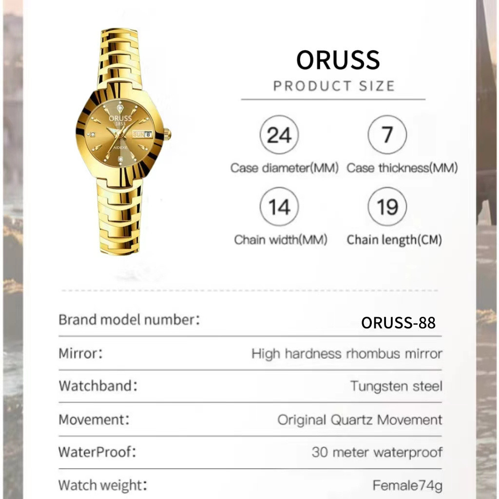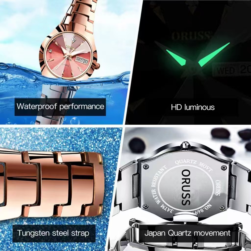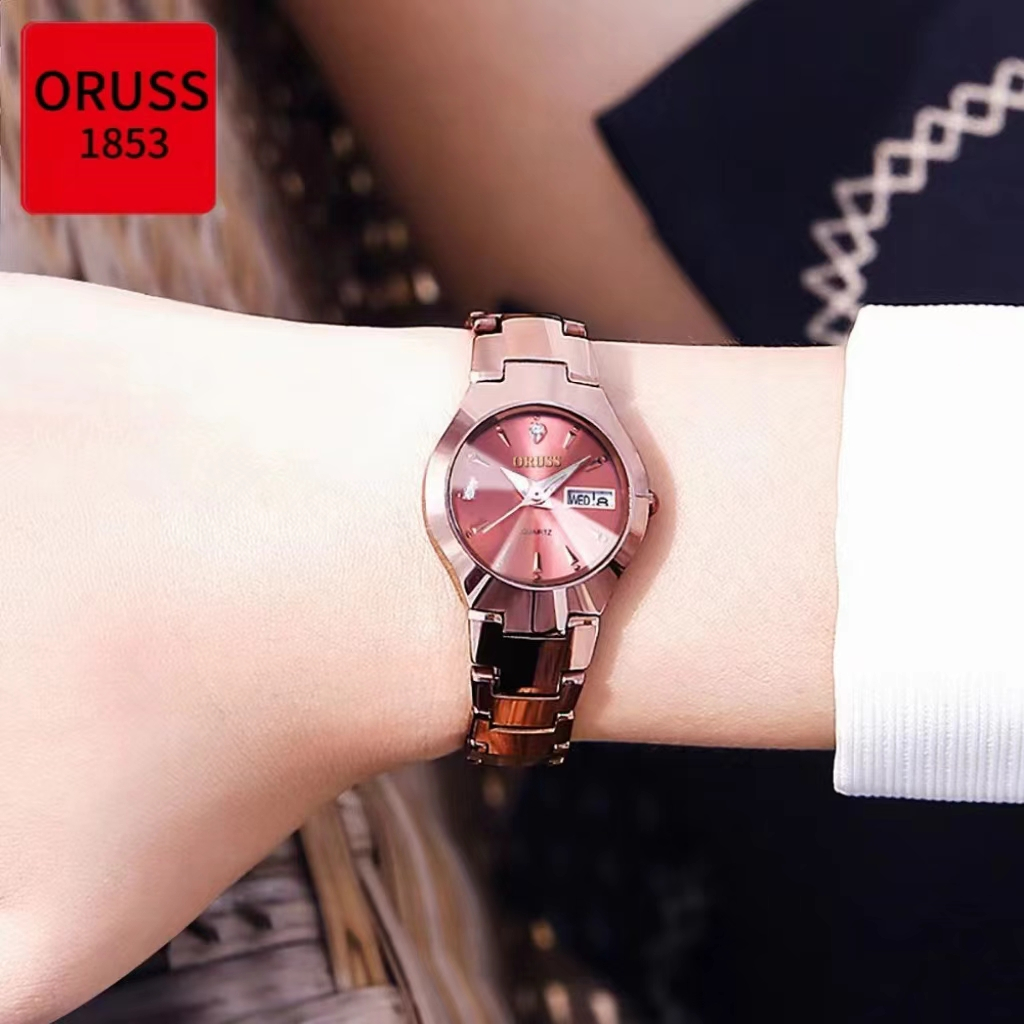 ORUSS Original หญิงสแตนเลส Dual ปฏิทินหรูหรากันน้ําแฟชั่นนาฬิกาขนาดเล็ก Rose Gold Luminous เวอร์ชั่นเกาหลีนาฬิกาข้อมือควอตซ์