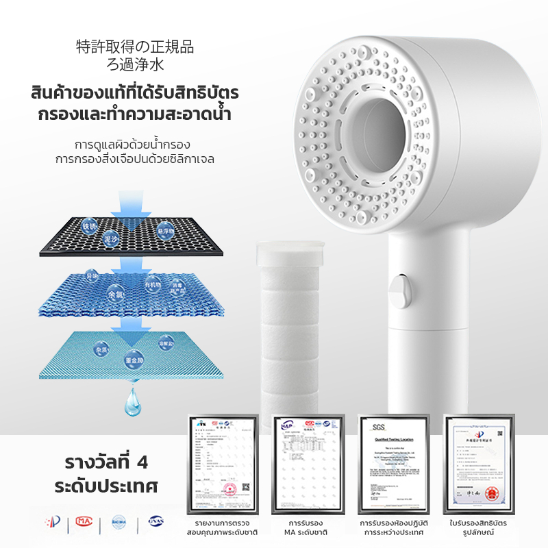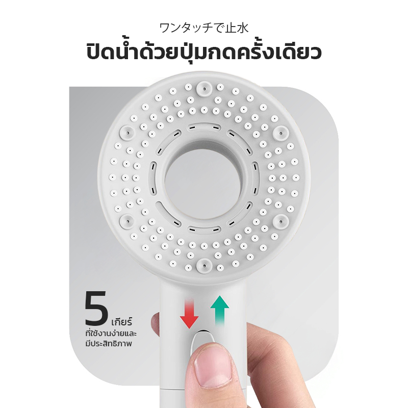 Mizushi ฝักบัวอาบน้ำ ระบบกรองน้ำ 6 ชั้น แรงดันน้ำเทอร์โบ กรองสิ่งสกปรกและคลอรีน ลดกลิ่น ปรับได้ 5 ระดับ