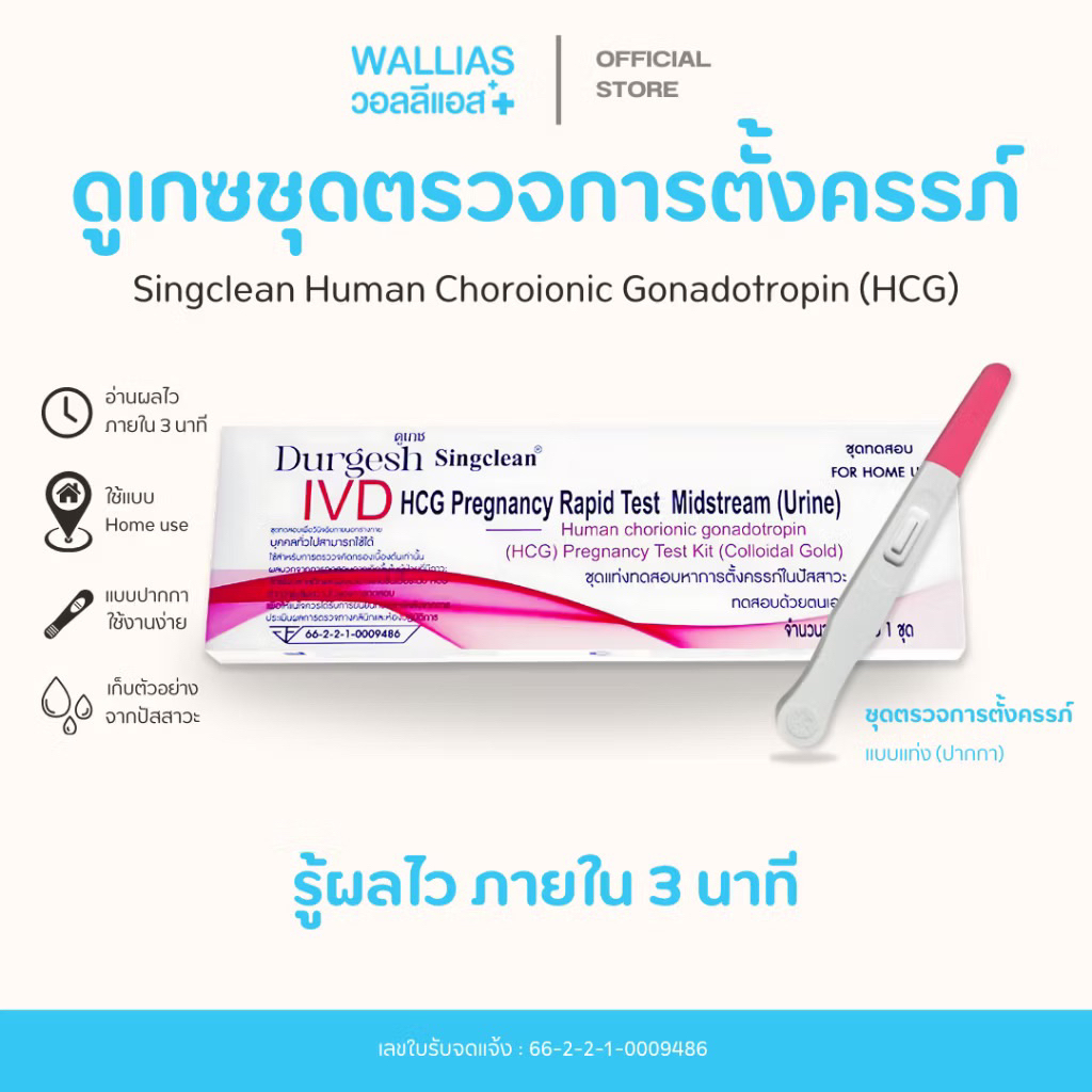 [แบบปากกา 1ชุด] ชุดทดสอบการตั้งครรภ์ Singclean Human Chorionic Gonadotropin (HCG) มี อย.ไทย