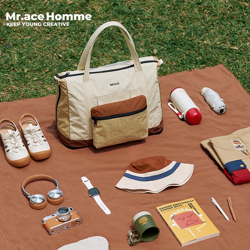 Mr.ace Homme กระเป๋า Duffle แบบพับได้ 30L กระเป๋าเดินทางสั้นกันน้ําสําหรับเที่ยวบิน 3323